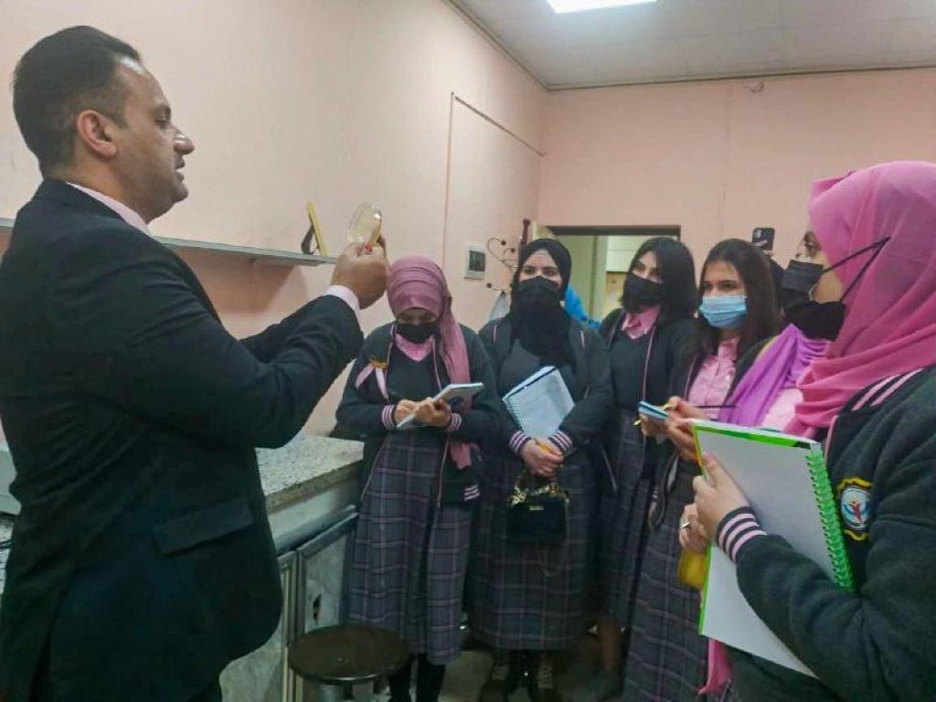 استقبلت كلية العلوم طالبات ثانوية قمة التميز الأهلية للبنات صباح يوم الأربعاء الموافق للتاسع من شهر آذار الجاري ، شملت الجولة زيارة عمادة الكلية لتقديم التهنئة للسيدة العميد المحترمة بمناسبة يوم المرأة العالمي ، ثم اصطحبوا بوساطة تدريسين من الكلية الى أروقة قسمي علوم الحياة والكيمياء مطلعين على عدة مختبرات علمية قدم خلالها عدداَ من تدريسي القسمين شروحات عن مواضيع عدة في اختصاصات علوم الحياة والكيمياء ، هدفت الى فتح آفاق المعرفة لديهم و رفع سقف آمالهم في التقدم و محبة العلم .
