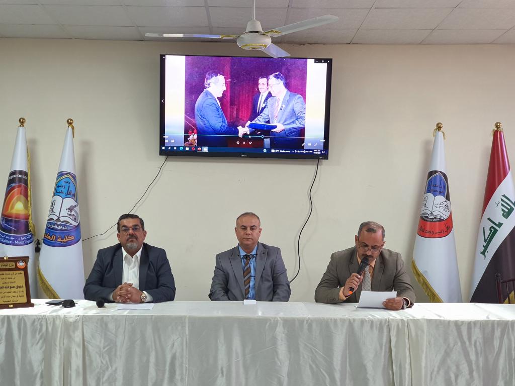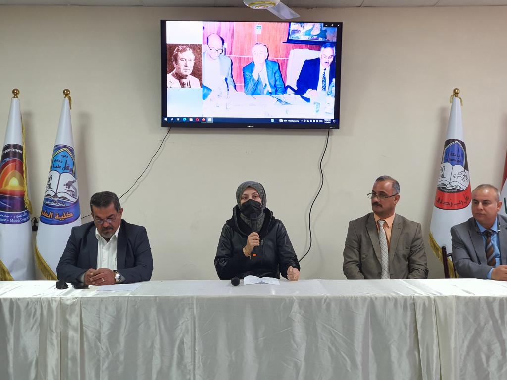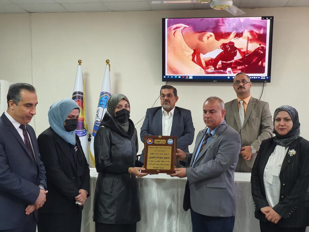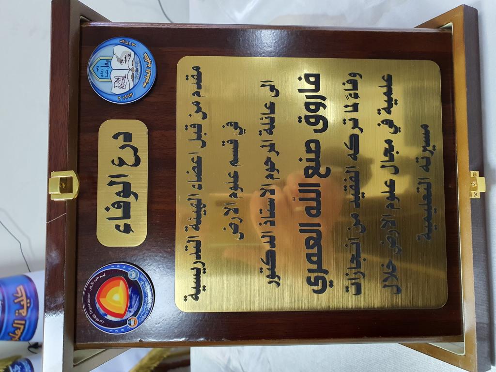 برعاية كريمة وحضور السيدة عميد كلية العلوم الأستاذ المساعد الدكتورة هيام عادل الطائي المحترمة والدكتور باسل محمد نذير عميد كلية الطب في جامعة الموصل والسيدين معاوني العميد للشؤون العلمية والإدارية ، أقام قسم علوم الأرض حفلاً تأبينياً للمرحوم الأستاذ الدكتور فاروق صنع الله العمري صباح يوم الاثنين الموافق 29 تشرين الثاني 2021 و على قاعة قسم علوم الأرض وبحضور عائلة الفقيد منهم د.علياء فاروق و م. آمنة فاروق و عدداً من الأساتذة في القسم والجامعة .استهل الحفل بقراءة سورة الفاتحة على روح الفقيد وتم إلقاء العديد من الكلمات في رثاء الفقيد وسيرته العلمية الزاخرة بالمنجزات العلمية والأكاديمية وفي نهاية الحفل قدمت السيدة عميد الكلية درع الوفاء من كلية العلوم لعائلة الفقيد ، كذلك قدّم السيد رئيس القسم درع الوفاء بأسم كافة تدريسيي القسم وفاء وعرفانا للفقيد ، وقد عبرت بنات الفقيد عن شكلهم و امتنانهم لهذه المبادرة الطيبة والتي تعكس روح المحبة والوفاء والعرفان بالجميل التي غرسها الدكتور فاروق العمري في نفوس الجميع .