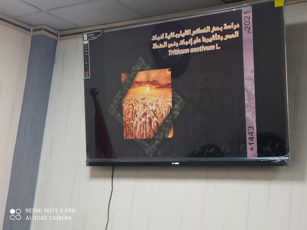 - طالبة الماجستير ( نورالهدى احمد محمد طاهر النعيمي ) عن رسالتها الموسومة ” دراسة بعض الخصائص الاليلوباثية لنبات الحمص وتأثيرها على انبات ونمو الحنطة Triticum aestivum ” بإشراف : د. وسن صالح حسين .مع تمنياتنا للجميع بالموفقية والنجاح.