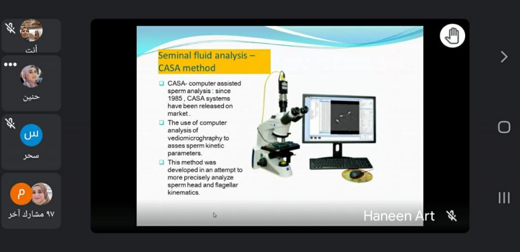 ضمن سلسلة النشاطات العلمية لقسم علوم الحياة وبحضور رئيس قسم علوم الحياة الاستاذ المساعد الدكتور رائد سالم الصفار القت طالبة الماجستير نعم مزاحم حلقة دراسية بعنوان (قياس فعالية انزيم الفوسفوداي استريز وبعض المتغيرات الكيموحيوية في مصل المرضى المصابين باورام الثدي الحميدة والخبيثة في مدينة الموصل) باشراف ا. م. د. هدى يونس العطار كما القت طالبة الماجستير حنين ايثار حلقة دراسية بعنوان(the bioenergetic changes during spermatogensis) باشراف الدكتور موفق خليل وذلك في تمام الساعة الثامنة من مساء يوم الاثنين المصادف ١٥/٢/٢٠٢١.مع تمنياتنا لطلبتنا الأعزاء دوام الموفقية والنجاح.