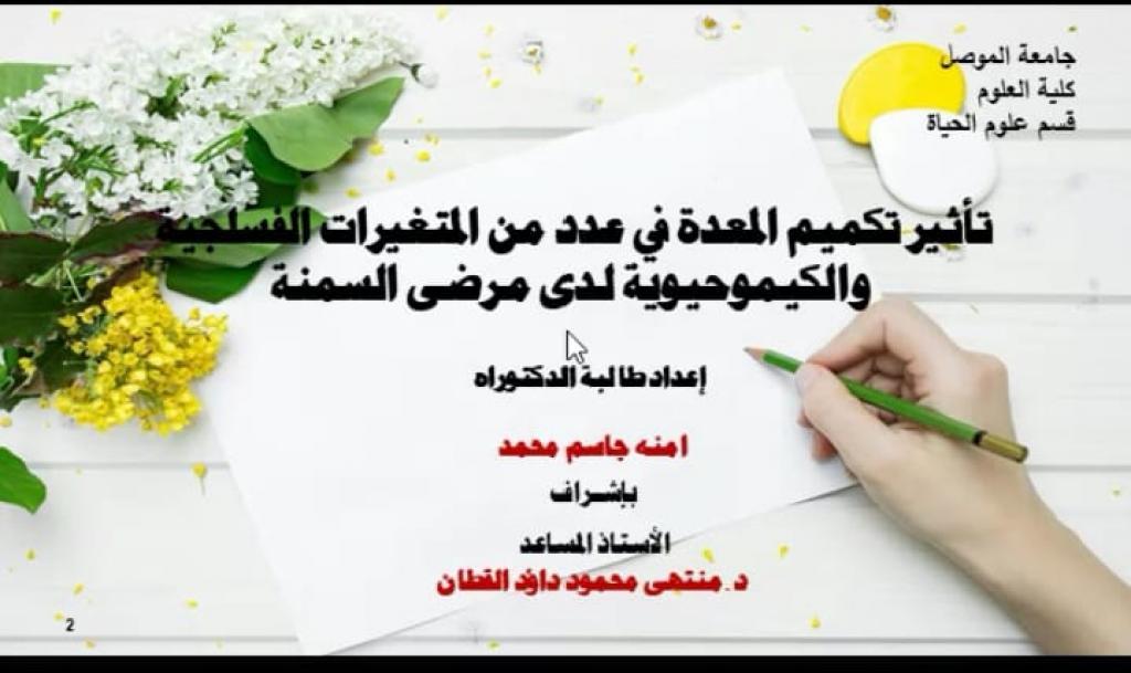 ضمن سلسلة النشاطات العلمية لقسم علوم الحياة وبحضور السيد رئيس قسم علوم الحياة الأستاذ المساعد الدكتور رائد سالم الصفار القت طالبة الدكتوراه ( آمنة جاسم ) حلقة دراسية عن اطروحتها الموسومة ” تأثير تكميم المعدة في عدد من المتغيرات الفسلجية والكيموحيوية لدى مرضى السمنة ” بإشراف أ.م.د. منتهى القطان .كما القت طالبة الماجستير ( نسمة إدريس صالح ) حلقة دراسية عن رسالتها الموسومة ” التأثيرات البايو كيميائية والجزيئية للتازر بين مركبي liposomal amphotericinB وthalidomide لعلاج اللشمانيا الجلدية والاحشائية خارج الجسم الحي ” باشراف م. د. هيثم لقمان الحيالي في تمام الساعة التاسعة والنصف من مساء يوم الاثنين الموافق 28 حزيران 2021.مع تمنياتنا لطلبتنا الأعزاء دوام الموفقية والنجاح.
