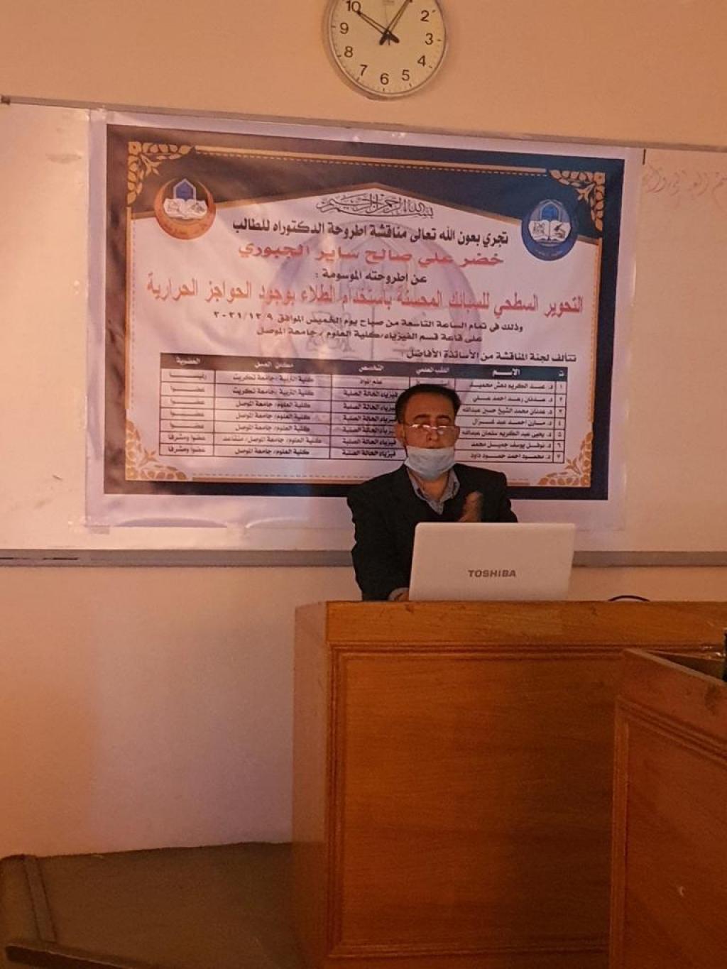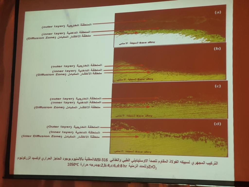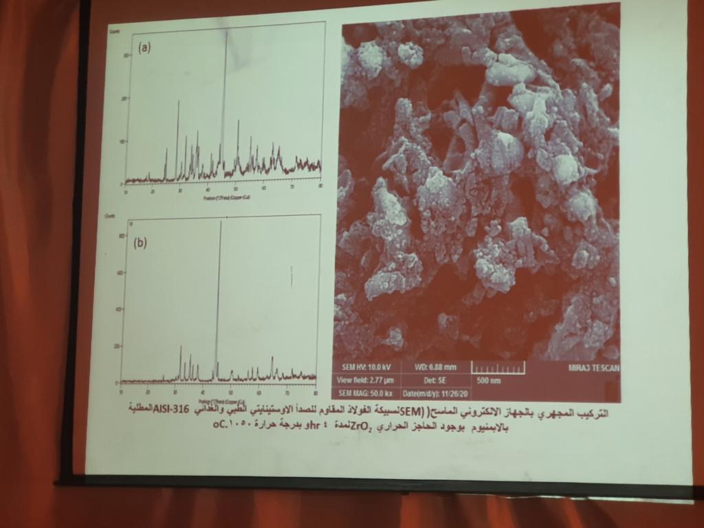 ضمن النشاطات العلمية لطلبة الدراسات العليا في كلية العلوم تم يوم الثلاثاء الموافق 7 كانون الأول 2021 أجريت حلقة دراسية من قبل طالب الدكتوراه ( خضر علي صالح ) من قسم الفيزياء عن أطروحته الموسومة ” التحوير السطحي للسبائك المحسنة باستخدام الطلاء بوجود الحواجز الحرارية ” تمحورت حول التحوير السطحي للسبائك المحسنة باستخدام الطلاء بوجود الحواجز الحرارية حيث تم استخدام ثلاث سبائك محسنة وهي الفولاذ المقاوم للصدأ 316 ذات اساس حديد والسبيكة المحسنة نوعIN 18 BV ذات أساس نيكل حديد والسبيكة المحسنة ذات اساس كوبلت FSX 414وذلك من خلال التعديل السطحي لها بواسطة الطلاء بالألمنيوم المنفرد والالمنيوم بوجود الحواجز الحرارية والتي هي اوكسيد التيتانيومTio2واوكسيد الزركونيوم ZrO2واوكسيد اليتيريوم Y2O3 وان طلاء السبائك بهذه المواد يعتبر تعديل سطحي لها وهو من الطرق الحديثة والتي تدخل في مجال هندسة الاسطح.حضرها السيد رئيس القسم الدكتور مازن أحمد عبد غزال وعدداً من تدريسيي القسم وطلاب الدراسات العليا .