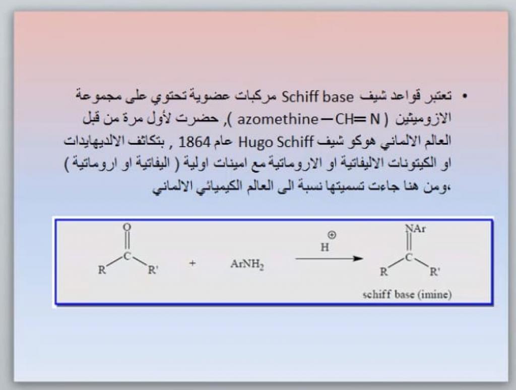 ضمن سلسلة النشاطات العلمية المتمثلة بالحلقات الدراسية لكلية العلوم و بمتابعة السيدة عميد كلية العلوم الأستاذ المساعد الدكتورة هيام عادل إبراهيم الطائي و حضور السيد رئيس قسم الفيزياء الحياتية أ.م.د مروان زهير الياس و معظم تدريسيي و منتسبي القسم ، تم إلقاء حلقة دراسية بعنوان ( تطبيقات قواعد شيف ) يوم الأربعاء الموافق 31 آذار 2021 عبر الفضاء الإلكتروني القتها الست إيمان موفق تطرقت خلالها الى التعريف عن هذه القواعد و الاهمية التطبيقية لهذه القواعد في مختلف المجالات الطبية والصيدلانية لما لها فعالية بايولوجية مميزة . و تطرقت الحلقة أيضاً الى أهمية هذه القواعد في مجالات الصناعات الكيميائية المتعددة ، وصاحب ذلك مشاركة فعالة ومفيدة لمجموعة من الأسئلة والاستفسارات في هذا المجال.