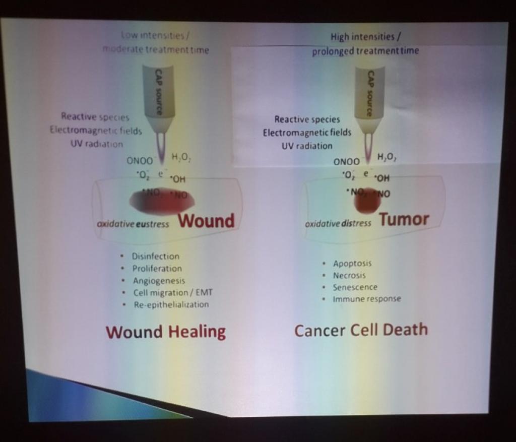 ضمن سلسلة النشاطات العلمية المتمثلة بالحلقات الدراسية لكلية العلوم وبمتابعة السيدة عميد كلية العلوم أ.م.د هيام عادل إبراهيم الطائي المحترمة وحضور السيد رئيس قسم الفيزياء الحياتية أ.م.د. مروان زهير الياس وتدريسيي ومنتسبي القسم تم إلقاء حلقة دراسية بعنوان ” فيزياء البلازما وتطبيقاتها في الطب ” يوم الاربعاء الموافق 22 كانون الاول2021 القاها الدكتور قصي خطاب عمر .تضمنت الحلقة التعريف عن ماهية حالة البلازما وانواعها والعوامل المؤثرة على البلازما. تركزت الحلقة على البلازما المحايدة والبلازما النافذة وتأثيراتها البايولوجية على الخلايا الحية وتطبيقاتها الطبية في علاج الامراض الجلدية والجروح وفي علاج الاورام وتطهير سطح الجلد.صاحبت الحلقة مشاركة فعالة ومفيدة لمجموعة من الأسئلة والاستفسارات في هذا المجال .