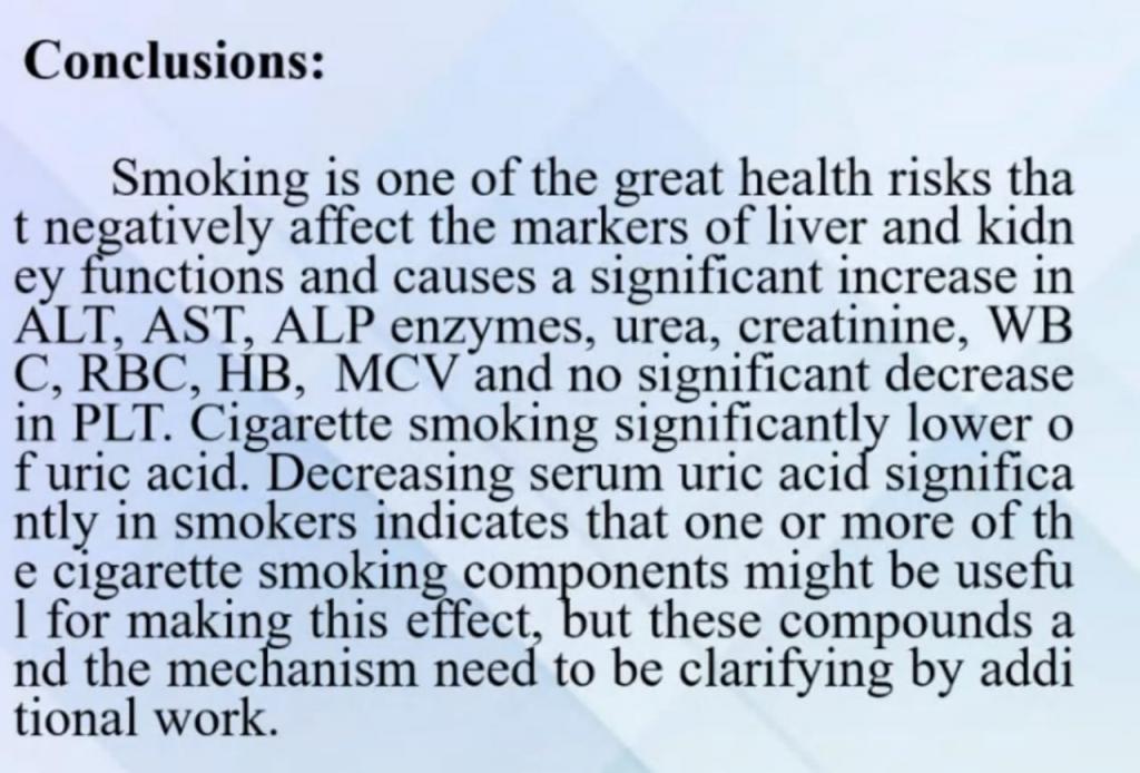 ضمن سلسلة النشاطات العلمية المتمثلة بالحلقات الدراسية لكلية العلوم و بمتابعة السيدة عميد كلية العلوم الأستاذ المساعد الدكتورة هيام عادل إبراهيم الطائي و حضور السيد رئيس قسم الفيزياء الحياتية أ.م.د. مروان زهير الياس و معظم تدريسيي ومنتسبي القسم .تم إلقاء حلقة دراسية عن ( مضار التدخين الصحية و تأثيراتها السالبة على وظائف الكبد والرئة وبعض معايير قياسات الدم ) يوم الأربعاء الموافق 7 نيسان 2021 وعبر الفضاء الإلكتروني القتها الدكتورة إنعام أحمد وصاحب ذلك مشاركة فعالة ومفيدة لمجموعة من الأسئلة والاستفسارات في هذا المجال .