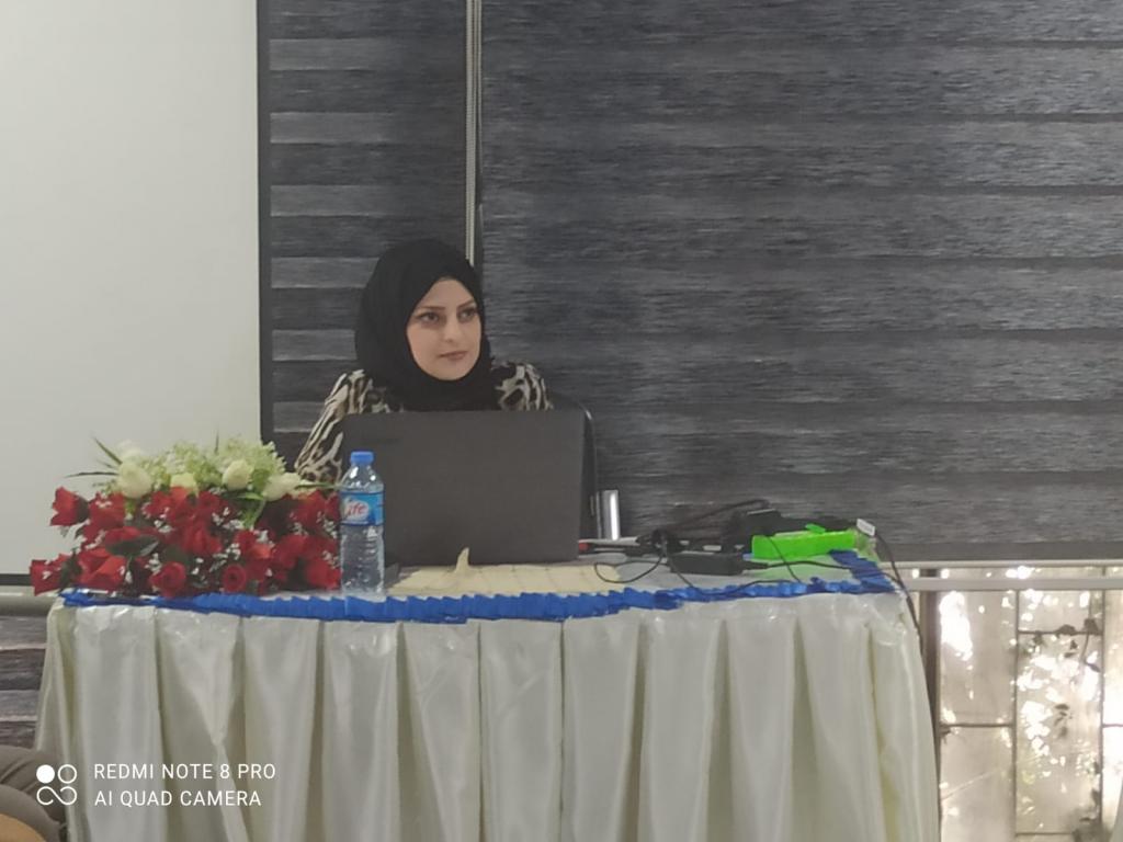 - طالبة الماجستير ( منار خضر أحمد ) عن رسالتها الموسومة ” التشخيص الجزيئي لبعض الامراض الجنينية في مصل دم الحوامل ” بإشراف : د. سراب داؤد سليمان .