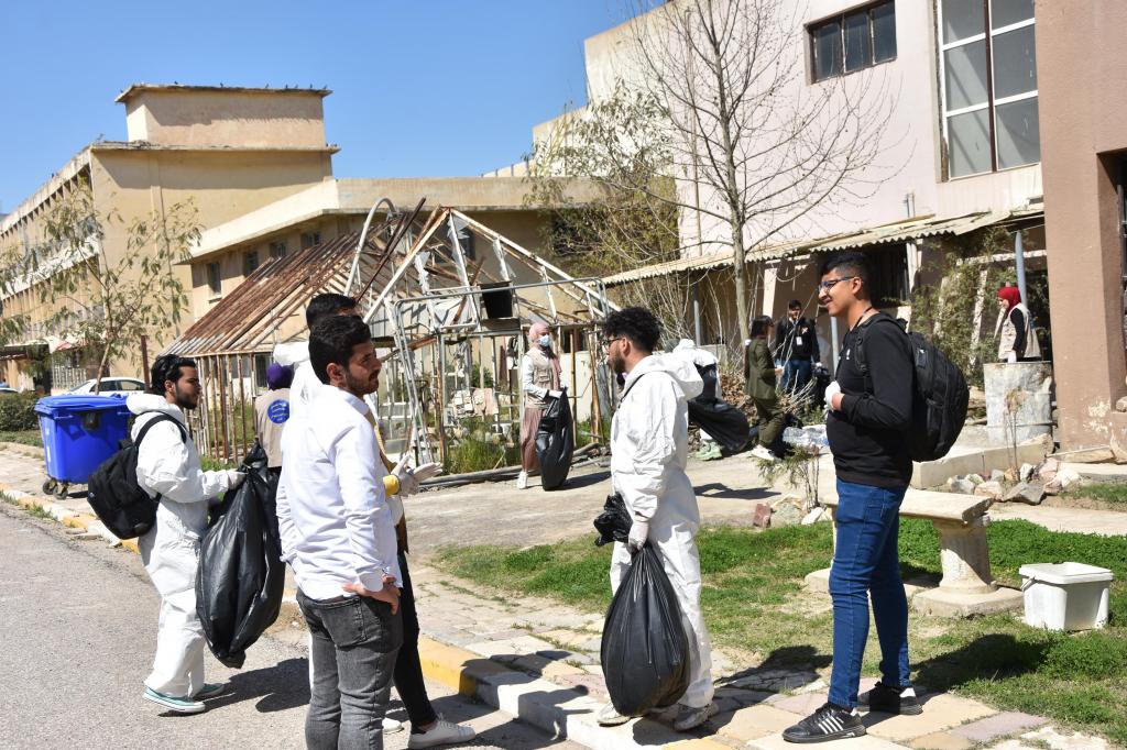 انطلاقاً من شعار ” بيئتنا- بيتنا ” و بإشراف و مشاركة السيدة عميد كلية العلوم الأستاذ الدكتورة هيام عادل ابراهيم وبالتعاون مع متطوعي حملة “سفراء النظافة” اضافة الى مشاركة فريق العلوم للإبداع ، نظمت كلية العلوم حملة تنظيف لأقسام الكلية وحدائق المركز الطلابي ، هدفت الحملة الى توعية الطلبة على أهمية النظافة في البيئة ورمي الأوساخ في الأماكن المخصصة لها باعتبار أن الجامعة هي بيتنا الثاني والحفاظ عليها وعلى نظافتها مسؤولية تقع على عاتق الجميع .بدورها ثمنت السيدة عميد الكلية الجهود الطيبة والمباركة للمشاركين في هذه الحملة والروح العالية التي أبدوها شعوراً بمسؤوليتهم في أهمية الحفاظ على كليتنا وجامعتنا كبيئة نظيفة تسهم في عكس صورة ايجابية في المجتمع.مع تمنياتنا لطلبتنا الأعزاء دوام التوفيق والنجاح خدمةً لجامعتنا العريقة