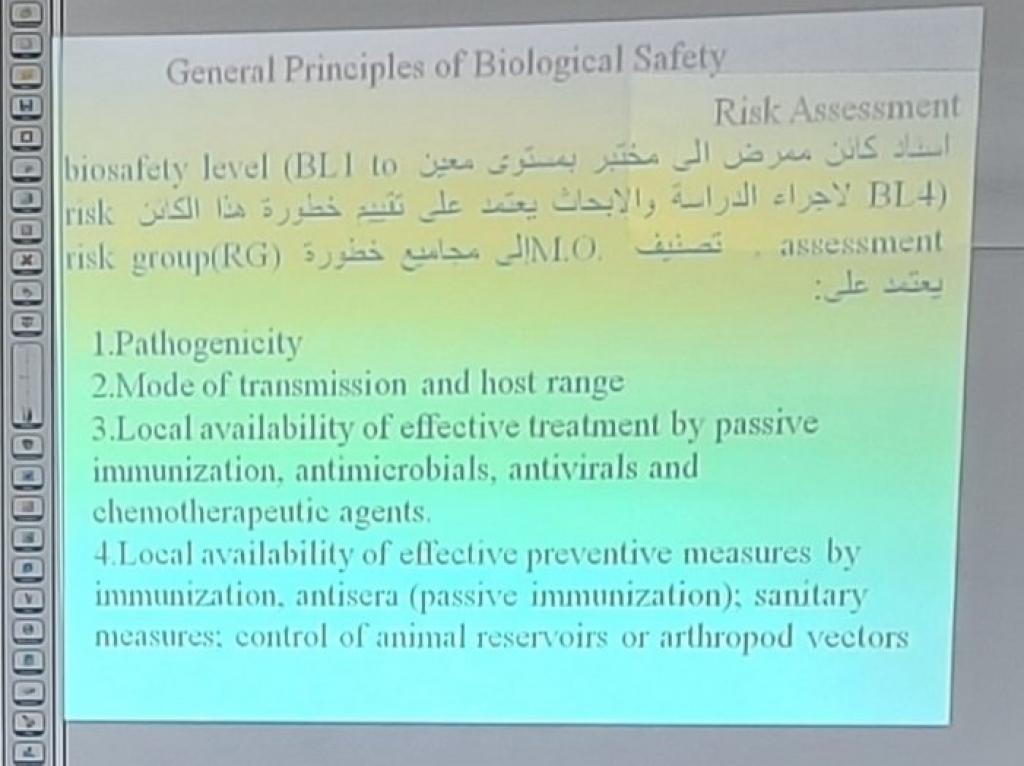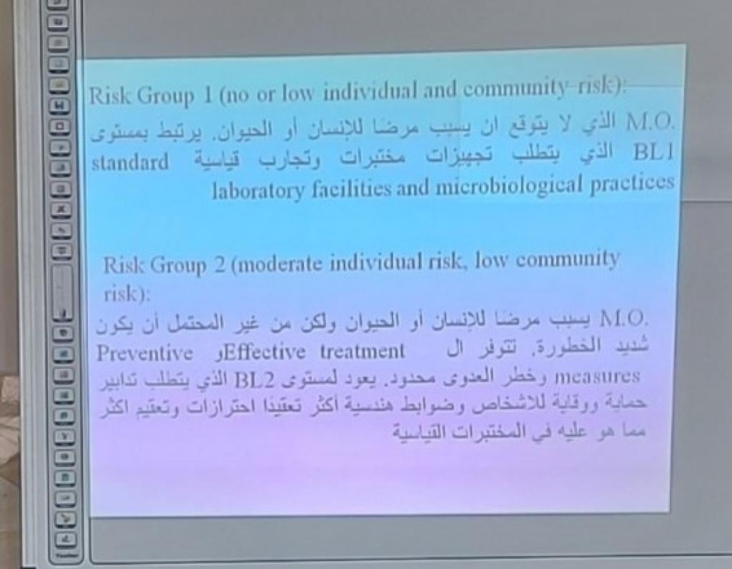برعاية السيد رئيس جامعة الموصل الأستاذ الدكتور قصي كمال الدين الأحمدي و إشراف السيدة عميد كلية العلوم الأستاذ الدكتورة هيام عادل إبراهيم ، اختتمت أعمال الدورة العلمية التي أقامها قسم الفيزياء الحياتية للفترة ( 8 – 10 أيار 2022 ) والموسومة ” السلامة والأمن الكيميائي والبايولوجي ” حاضر فيها كل من م. د. محمود أحمد محمد فخري و م.د. سمية عدنان صالح و م.إيمان موفق رمضان .تضمنت الدورة مقدمة عن المختبرات الكيميائية وتصميمها ومسؤوليات العاملين في المختبرات ، وكذلك مخاطر المواد الكيميائية واقسامها من حيث الخطورة وكيفية الوقاية من مخاطر المواد بكافة أقسامها وكيفية التعامل مع المواد الكيميائية داخل مختبرات الكيمياء.كما تطرقت الى وسائل الحماية المستخدمة في المختبرات لحماية العاملين فيها فضلاً عن شرح علامات أو الاشارات الواجب اتباعها في المختبرات واقسامها وماذا تعني الوانها المختلفة فضلاً عن توضيح أنواع الاصابات التي تحدث في المختبرات الكيميائية وطرق التعامل مع انسكاب او انتشار المواد الكيميائية في المختبرات وما هي افضل طرق تخزين المواد الكيميائية والحفاظ عليها في المختبرات .أخيراً تم شرح أصناف المختبرات البايولوجية وماهي خاصية ومواصفات كل صنف من هذه المختبرات وما هي المعدات البايولوجية الواجب توفرها في كل صنف .وفي ختام الدورة تم توزيع الشهادات على المشتركين في الدورة