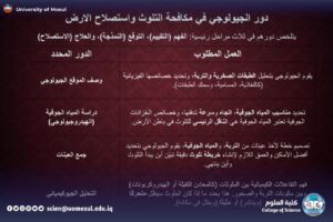 دورةٌ علميَّـةٌ في قسـمِ علــومِ الأرضِ والنَّفـطِ بعنـوان (إدارةُ المخاطِـرِ البيئِيَّـةِ واستصـلاح الاراضي المُلوَّثـةِ)
