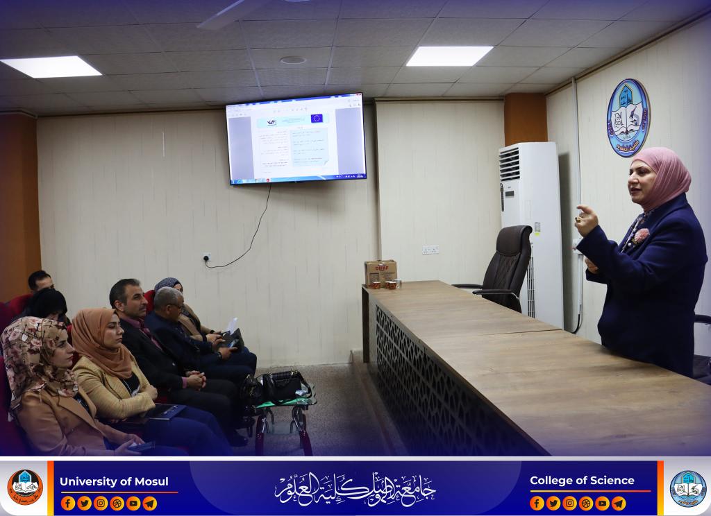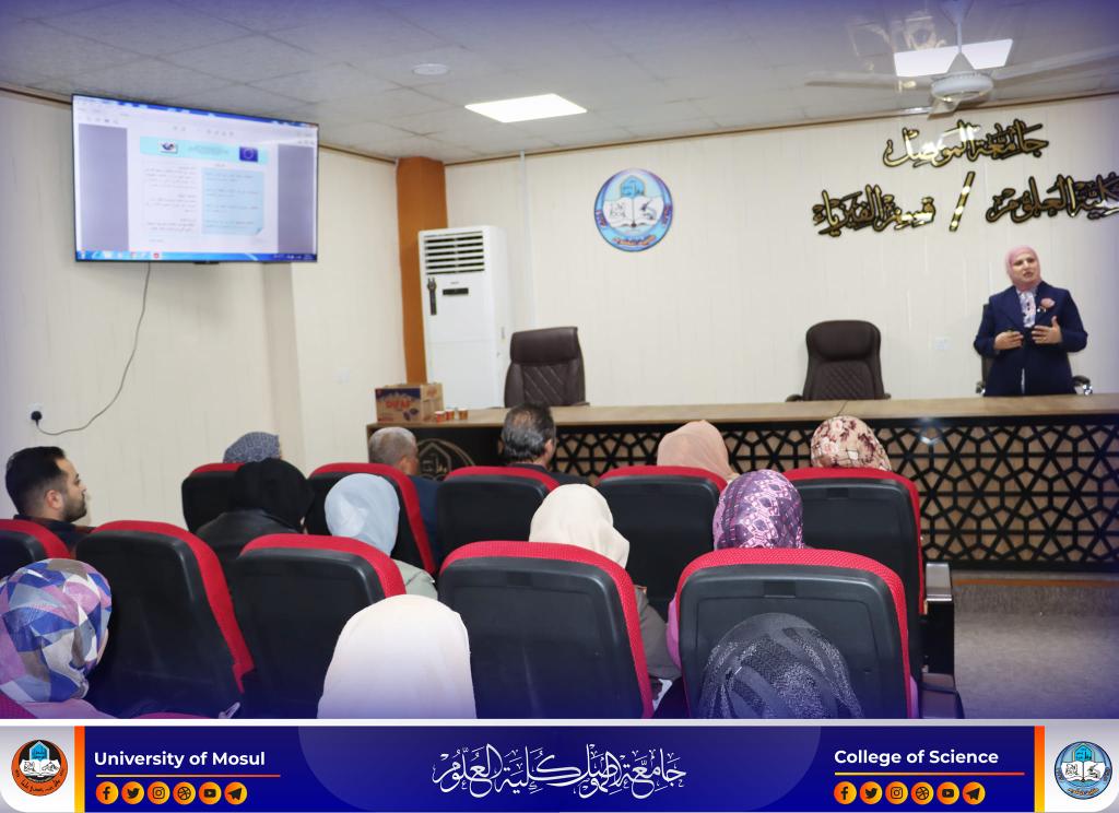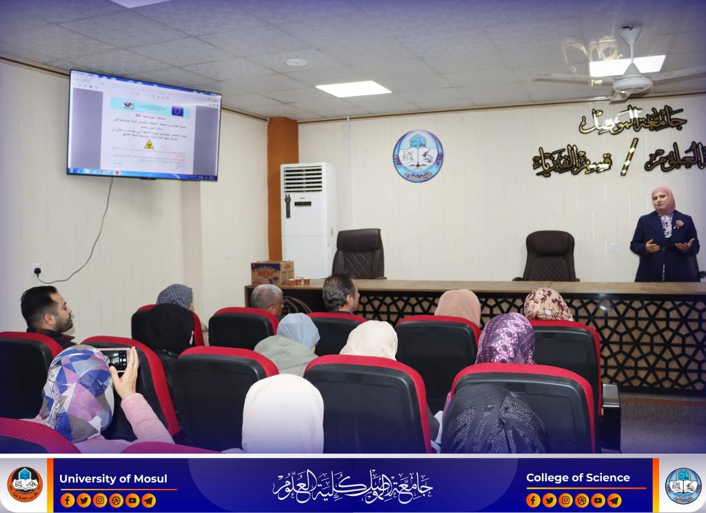 استمرار دورة السلامة والأمن الكيمياوي و البايولوجي التي يقيمها فريق CBRN التابع لرئاسة جامعة الموصل لطلبة الدراسات العليا في جامعة الموصل ممن هم في المرحلة البحثية و يستضيفها قسم الفيزياء بكليتنا.هذا وقد ألقت السيدة عميد الكلية واحد أعضاء الفريق الأستاذ الدكتورة هيام عادل إبراهيم إحدى محاضرات الدورة التي تناولت المخاطر البايولوجية وتصنيفاتها المتنوعة ، وذلك صباح يوم الثلاثاء الموافق 28 شباط 2023.تمنياتنا للجميع بالتوفيق