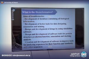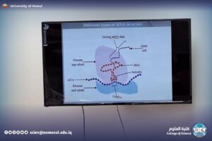 برعايةٍ مُباركـةٍ من السَّيـد رئيـسِ جامِعَـةِ الموصـلِ الأستـاذ الدكتـور وحيـد محمـود الإبراهيمي المُحترم وإشـرافِ السَّيِّــدة عميـد كُليَّـــةِ العلـــومِ الأُستـاذ الدكتـورة هِيــام عـادل إبراهيـم المُحترمـة ومتابعـةِ وحضـور السَّيـد رئيـس قسـم علـوم الحياة الأستاذ الدكتـور أمجد عبد الهـادي المُحتـرم وضمن برامج التعليم المستمر، أُقيمَـت دورةً علميةً بعنوان” جين 16S rRNA: أداةٌ حيوِيَّـةٌ لتحديـدِ وتصنيـفِ البكتريـا” للفترة 12-20 تشرين الثَّانـي 2025، ألقتهـا كـلٌّ من أ.د. إسراء غانم حازم و م.د. هدى وليد هادي، وحضرهـا السيـد المُقـرر وعـددٌ من تدريسِـيِّ وطلبـة القسـم فضلاً عن مجموعة من المشاركين من داخل جامعة الموصل.