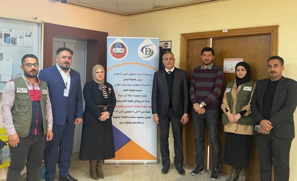 برعاية السيد رئيس جامعة الموصل الأستاذ الدكتور قصي كمال الدين الأحمدي المحترم وبإشراف السيدة عميد كلية العلوم الأستاذ الدكتورة هيام عادل إبراهيم المحترمة ، أقامت جمعية دجلة الزراعية دورة تدريبية في كلية العلوم لطلبة المرحلة الرابعة في قسمي الفيزياء و الطاقات الجديدة والمتجددة بعنوان ” تصميم أنظمة الطاقة الشمسية وكيفية استخدامها “للفترة من 27 الى 28 كانون الأول 2022 .هدفت الدورة إلى تعزيز مفاهيم استخدام الطاقة النظيفة وكيفية الاستفادة منها واستخدامها بشكل واسع و تم التطرق الى مكونات منظومة الطاقة الشمسية المنزلية ووظائفها والطرق والتقنيات السليمة المتبعة في تركيب المنظومة في المنازل لتحقيق الاستفادة المثلى من الطاقة الشمسية بما يسهم في الحفاظ على البيئة.حضرها السيدة عميد الكلية والسيد رئيس القسم ومجموعة من أساتذة وطلبة القسم .شعبة الإعلام والعلاقات العامةالإثنين 2 كانون الثاني 2023