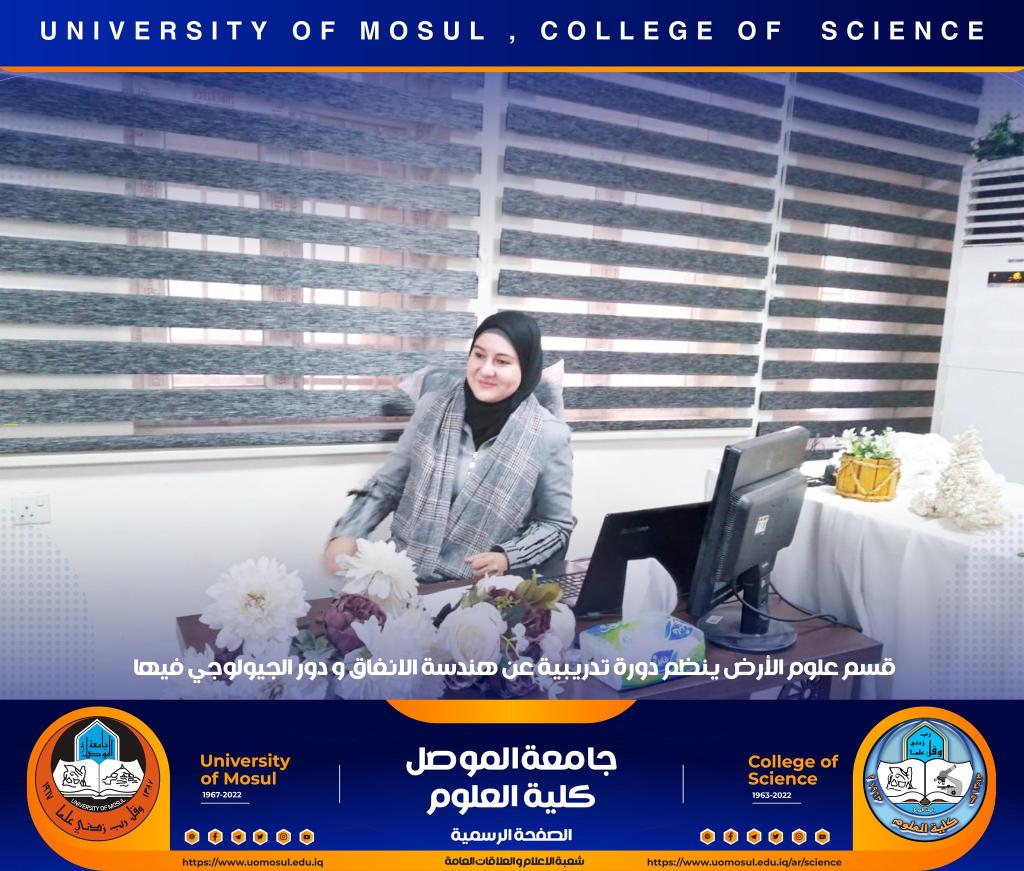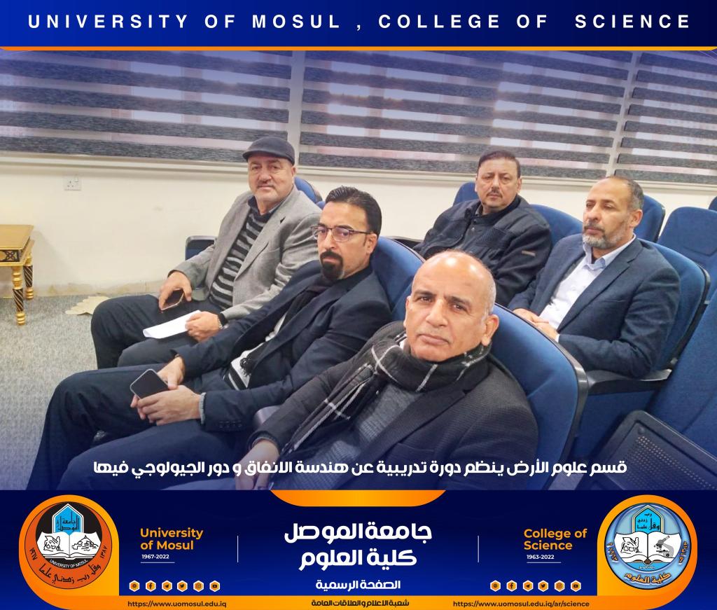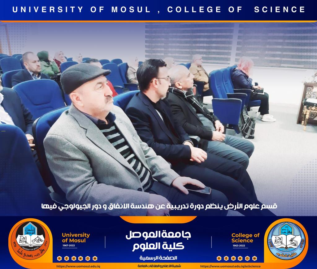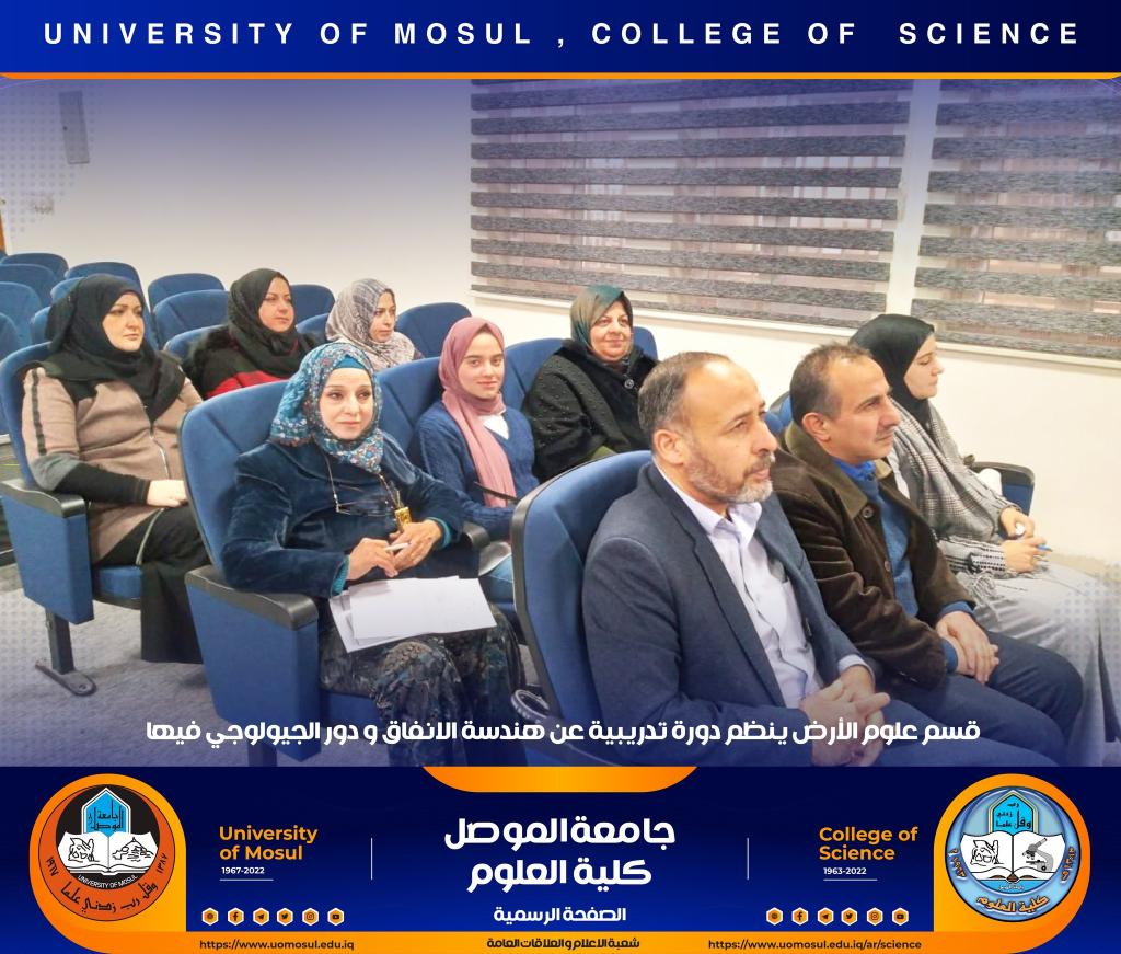 برعاية السيد رئيس جامعة الموصل الأستاذ الدكتور قصي كمال الدين الأحمدي وبإشراف السيدة عميد كلية العلوم الأستاذ الدكتورة هيام عادل إبراهيم ، أقام قسم علوم الأرض وضمن دورات التعليم المستمر في الكلية دورة تدريبية بعنوان (( هندسة الأنفاق ودور الجيولوجي فيها )) للمدة من 20-22 كانون الأول 2022 حضرها عدد من تدريسي الكلية.اشتملت الدورة على ثلاثة محاضرات ، تناولت أولاها التي القاها الأستاذ المساعد الدكتور عزالدين صالح حسن الجوادي _ كلية هندسة النفط والتعدين التعريف بالأنفاق وأنواعها وتصنيفها والأهداف منها وطرق الحفر الحديثة المستخدمة في الحفر كذلك الأنفاق التي تحفر بعمليات التفجير فضلاً عن الأنفاق التي تشيد تحت سطح الماء .أما المحاضرة الثانية فقد القاها المدرس ضياء غاوي صالح / قسم علوم الأرض وتضمنت هندسة الأنفاق والصخور المحيطة فيها حيث بين طرق دراسة الاجهادات الديناميكية للصخور المحيطة بالأنفاق .أما المحاضرة الثالثة فالقتها المدرس زينب مصدق شنشل / قسم علوم الأرض تضمنت دور الجيوفيزياء التطبيقية في هندسة الأنفاق مبينة أهم الطرق الجيوفيزيائية المستخدمة في التحريات الموقعية قبل وأثناء وبعد انشاء الأنفاق الهندسية .شعبة الأعلام و العلاقات العامةالجمعة 23 كانون الأول 2022