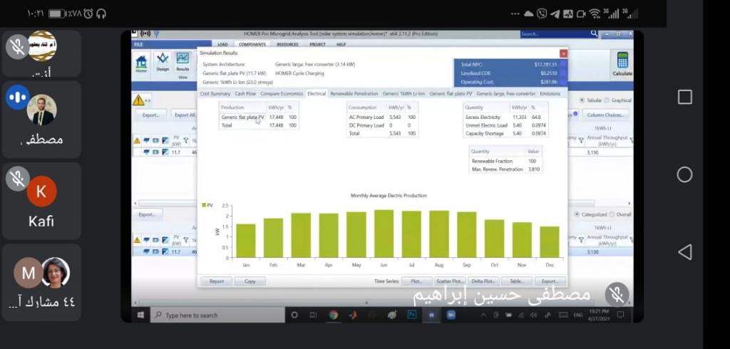 اختتمت مساء يوم الأربعاء الموافق 28 نيسان 2021 أعمال دورة التعليم المستمر التي أقامها قسم الطاقات الجديدة و المتجددة و لمدة ثلاث أيام و الموسومة ” كيفية استخدام برنامج Homer في محاكاة نظم الطاقة المتجددة ” حيث قام بإلقائها ( م.م. مصطفى حسين إبراهيم ) .تأتي هذه النشاطات العلمية بإشراف السيدة عميد الكلية الأستاذ المساعد هيام عادل إبراهيم الطائي و متابعة السيد رئيس القسم الدكتور عاصم أحمد عيسى .إذ تضمنت الدورة ثلاث محاور :