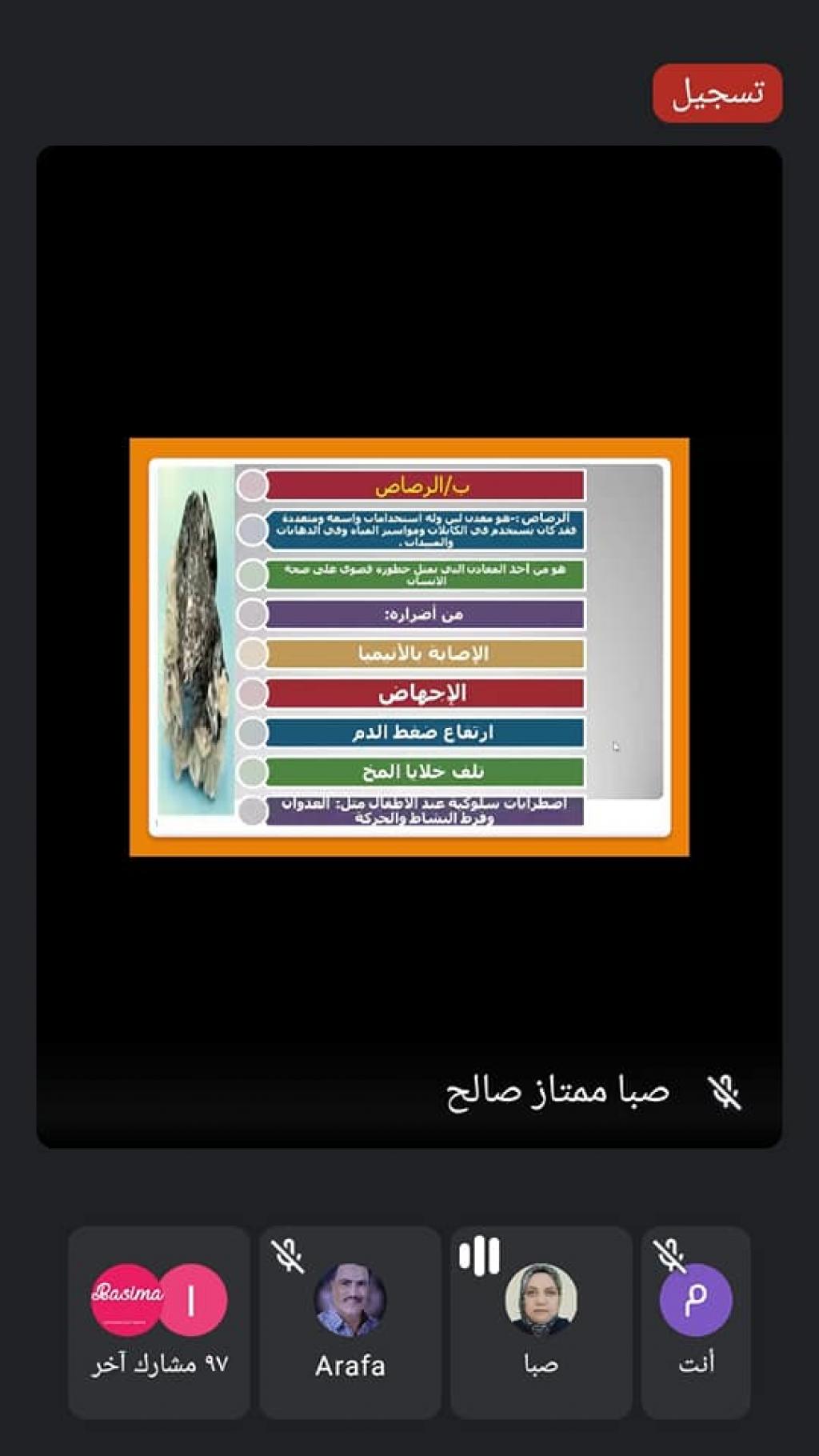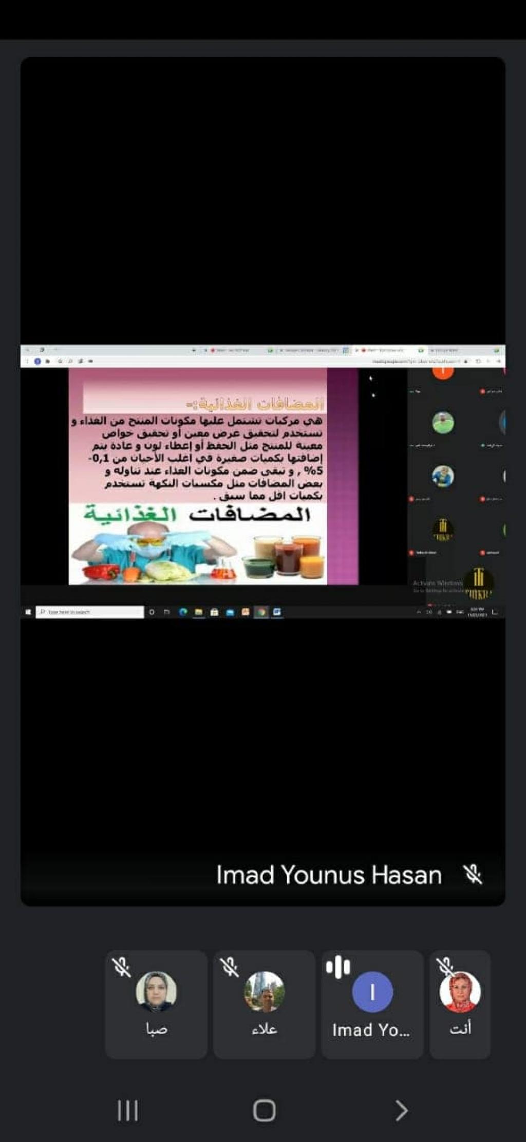 أقامت كلية العلوم/ قسم الكيمياء دورة تدريبية إلكترونية بعنوان “الملوثات الكيميائية للأغذية ” وبتوجيه مباشر من قبل السيدة عميد كلية العلوم الاستاذ المساعد الدكتورة هيام عادل الطائيوكان الحضور محليا من مختلف الجامعات العراقية وعربيا من جمهورية مصر العربية والجزائر والسعودية والامارات والمغرب والاردن وتونس وليبيا والصومال والسودان ودوليا من كندا وتركيا وامريكا وهنكاريا ونيجيريا اذ تجاوز الحضور اكثر من 1000 شخص في الدورة ….تناوب على القاء المحاضرات لمدة ثلاثة أيام للفترة من21 -23 / 2 / 2021كل من أ. م.د.صهباء عليو م.صبا ممتاز صالحاليوم الاول :كانت المحاضرة عن المضافات الغذائية والملونات الصناعية.اليوم الثاني : محاضرة عن المعادن الثقيلة .اليوم الثالث :محاضرة عن العقاقير الطبية والمبيدات الكيميائية.وخرجت الدورة بعدد من التوصيات منها :1-المضافات الغذائية لها درجة من السمية يجب أن تخضع للرقابة بصفة دورية للتأكد من نسب إضافتها حفاظا على صحة وسلامة المستهلك.2- أستخدام الالوان الطبيعية التي نستخلص من الطبيعة بدلا من الالوان الصناعية.3- وضع الضوابط والحدود المسموحة بها من بقايا العناصر المعدنية الثقيلة في الأغذية المختلفة.4 -استعمال المبيدات بالجرعى الموصى بها مع التخفيف بالماء بالمعدلات المقررة.5- عدم استعمال المضادات الحيوية إلا التي يصفها الشخص الطبي المهني المعتمد.6-الابتعاد عن تناول الحيوانات المحقونة بالهرمونات لما لها من آثار على صحة الإنسان.7-ننصح بتجنب تناول المواد الغذائية المحتوية على المضافات والألوان الصناعية من قبل الأطفال والنساء الحوامل.وفي نهاية الدورة تم إجراء اختبار بمنهج الدورة مع توزيع الشهادات للحضور…