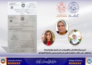 راعي بيتنا الجامعي يمنح تدريسية وطالبتان بكالوريوس من قسم علوم الحياة كتاب شكر و تقدير