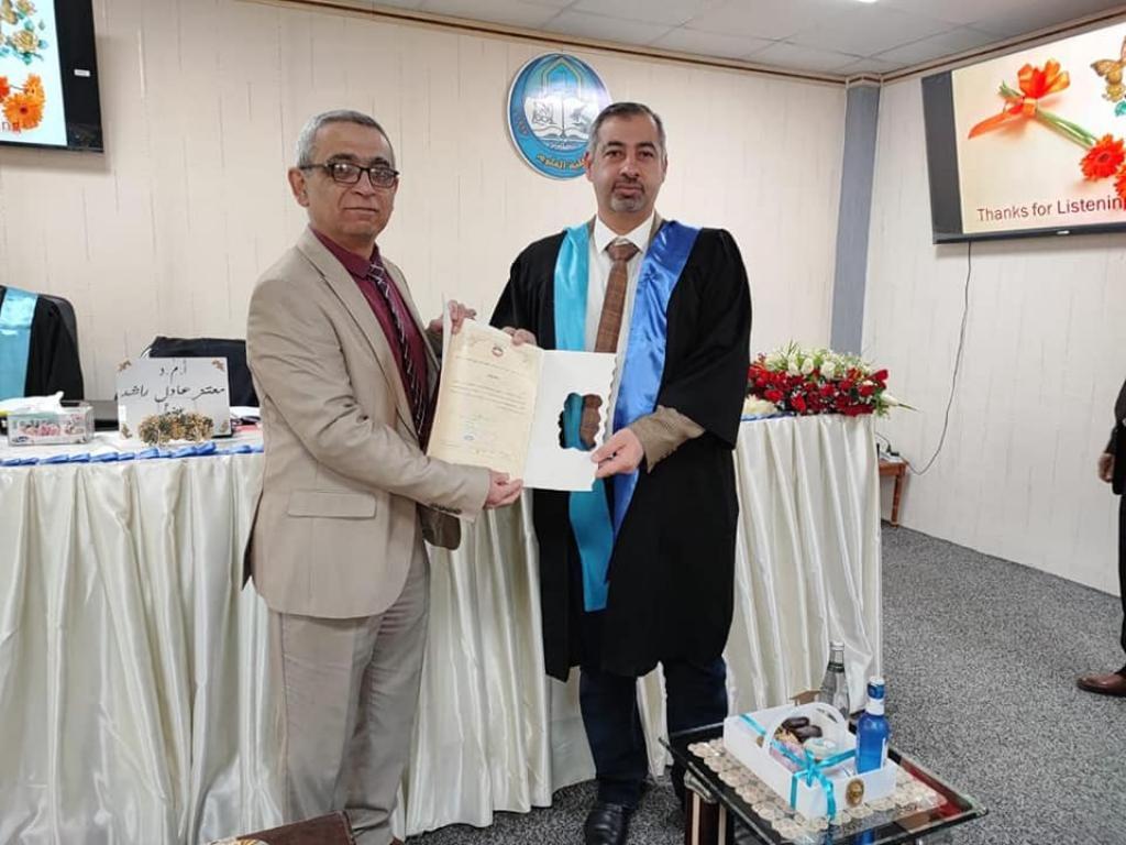 ناقشت كلية العلوم في جامعة الموصل يوم الأربعاء الموافق 30 آذار 2022رسالة الماجستير الموسومة :( A taxonomic and biochemical study comparing the two type of medicinal leeches available in Iraq )حضر جانبا منها السيدة العميد الأستاذ الدكتورة هيام عادل ابراهيم و السيد معاون العميد وعدداً من تدريسي القسم.تناولت الدراسة التي تقدمت بها الطالبة ( إسلام خالد كمال) من قسم علوم الحياة / فرع علم الحيوان المقارنة بين نوعين من ديدان العلق الطبي التي تم جمعها من منطقتين مختلفتين في العراق , العينات الأولى تم جمعها من قرية خورمال في محافظة السليمانية اما العينات الثانية فقد تم جمعها من قضاء شقلاوة في محافظة اربيل.شملت الدراسة جانبين الأول دراسة تصنيفية حيث تم تشخيص ديدان العلق بالاعتماد على صفاتها الخارجية (التصنيف المظهري) وللتأكد من هذا التشخيص تمت الاستعانة بعلم الأحياء الجزيئي حيث تم استخلاص الحامض النووي الدي اوكسي رايبوزي ( DNA ) من عينات المنطقتين وتم ارسالها الى المركز الوطني لمعلومات التقنية الحيوية وتم اكتشاف سلالة جديدة من Hirudo medicinalis من العينات الأولى (قرية خورمال) وتم تسميتها NI الحرف الاول من اسم المشرفة والطالبة .المعزولة NI ل Hirudo medicinalis كانت الأكثر قرابة للمعزولة PO61 من Hirudo medicinalis المعزولةوتضنت الدراسة جانب دراسة كيموحيوية لنوعين من ديدان العلق الطبي وتضمنت دراسة لعاب وجسم Hirudo medicinalis وHirudo verbana .اظهرت النتائج ان كمية البروتين الكلي في اللعاب ل H.medicinalis كان 16.66± 1.15 مايكروغرام لكل سم مكعب وفي لعاب H.verbana كان 16.33± 0.57 مايكروغرام لكل سم مكعب , اما نتائج كمية البروتين الكلي في جسم H.medicinalis فكانت 31± 1 مايكروغرام لكل سم مكعب وفي جسم H.verbana كانت 37.33± 1.52 مايكروغرام لكل سم مكعب.هدفت الدراسة الحالية إلى ما يأتي:1- Identifying and classifying the samples which were collected from different ecological areas.2- Estimating quantitativley the four essential vital components (protein, carbohydrate, lipids and nucleic acids in the body and in the saliva of medical leeches.3- Studying DNA sequences and phylogenetic tree of medical leeches.4- Extracting DNA and other nucleic acids and estimating the purity of DNA and RNA.Estimating the activity of some enzymes.5- Comparing the components of saliva of two types of medical leeches to know which one is better from a medical point of view.ترأس لجنة المناقشة أ.م. د. وعد صبري شاهر وعضوية كل من أ.م. د. مروة هاشم داؤود حموشي و أ. م. د. معتز عادل راشد خليل وبإشراف أ.م.د. نجاح صبحي نايف.قدم الأستاذ المساعد الدكتور محمد صبحي نيابة عن السيدة العميد كتاب شكر الى أ. م. د. معتز عادل راشد/الجامعة التقنية الشمالية/المعهد التقني/الموصل ؛ لجهوده المبذولة في مناقشة الطالبة.
