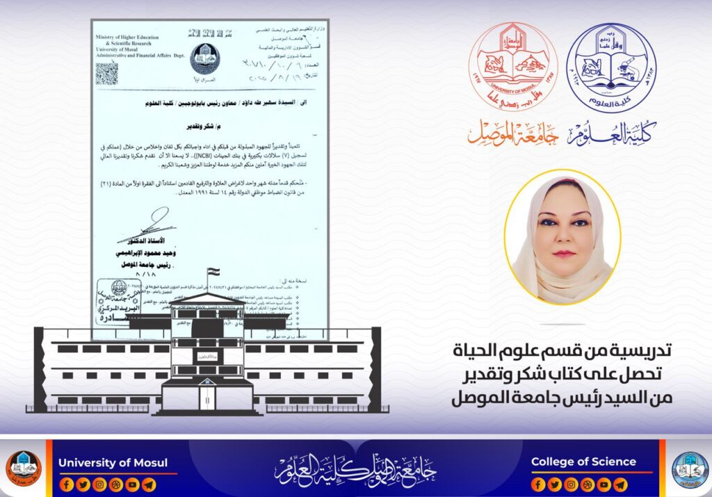 ناقش قسم علوم الحياة في كلية العلوم بجامعة الموصل، يوم الأحد الموافق 14 أيلول 2025، رسالة الماجستير الموسومة ” استجابة البكتريا اللانموذجية الموجبة الكرام والمعزولة من المصادر السريرية في الموصل / العراق”، للطالب عامر رجب محمود من فرع الأحياء المجهرية.