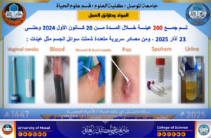 ناقش قسم علوم الحياة في كلية العلوم بجامعة الموصل، يوم الأحد الموافق 14 أيلول 2025، رسالة الماجستير الموسومة ” استجابة البكتريا اللانموذجية الموجبة الكرام والمعزولة من المصادر السريرية في الموصل / العراق”، للطالب عامر رجب محمود من فرع الأحياء المجهرية.