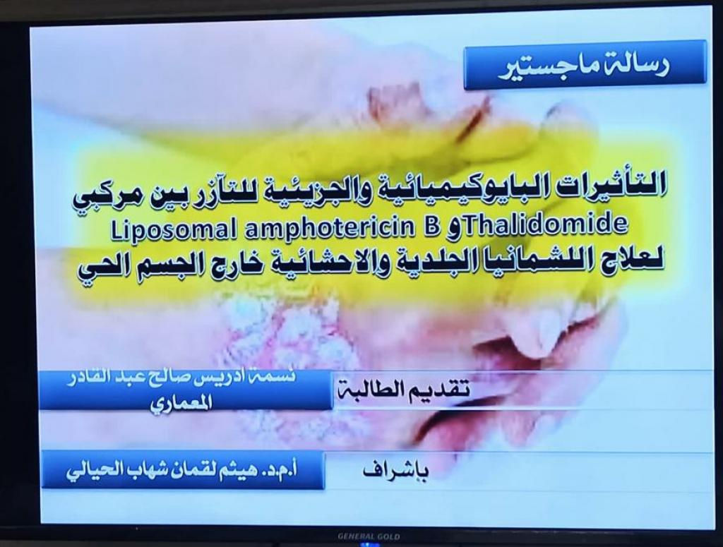 رسالة ماجستير تناقش التأثيرات البايوكيميائية والجزيئية للتآزر بين مركبي Liposomal amphotericin B وThalidomide