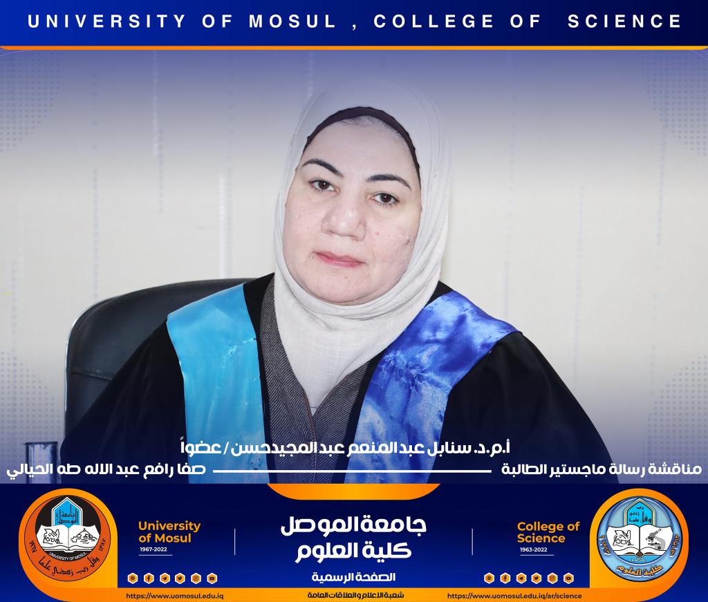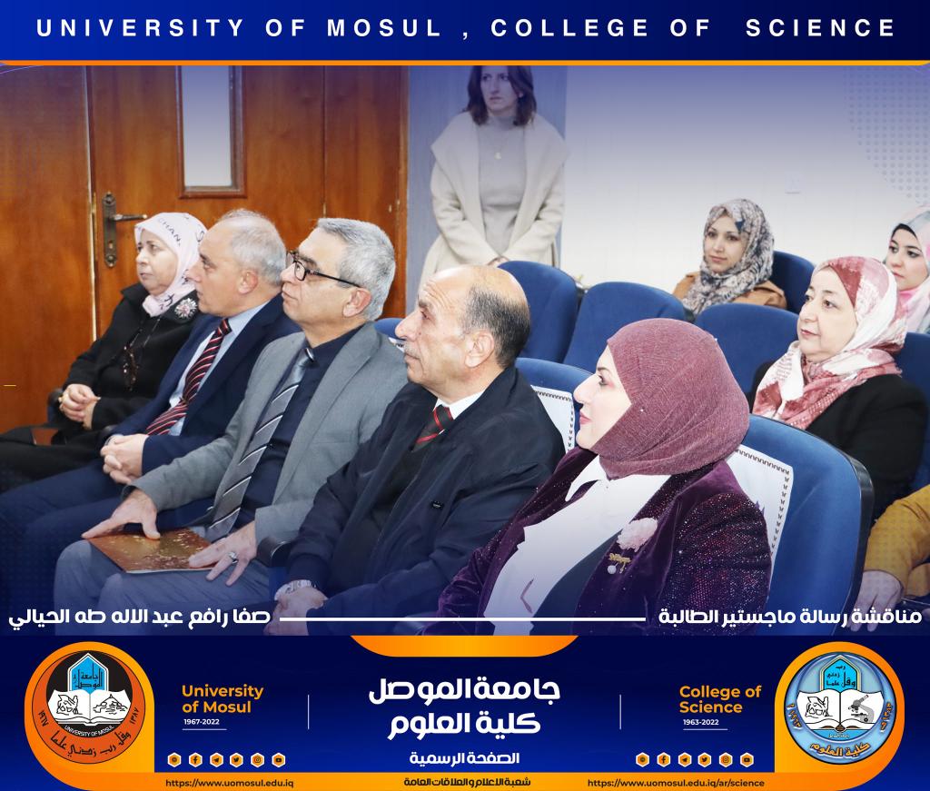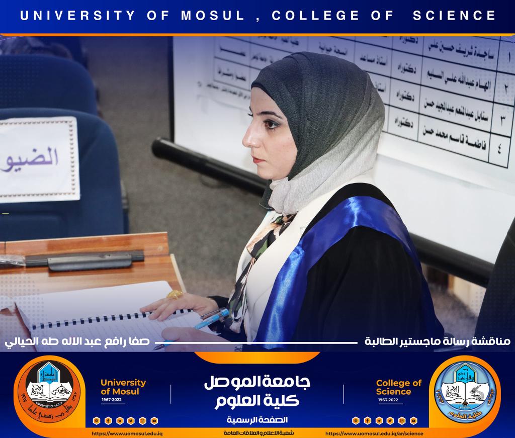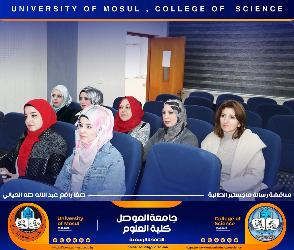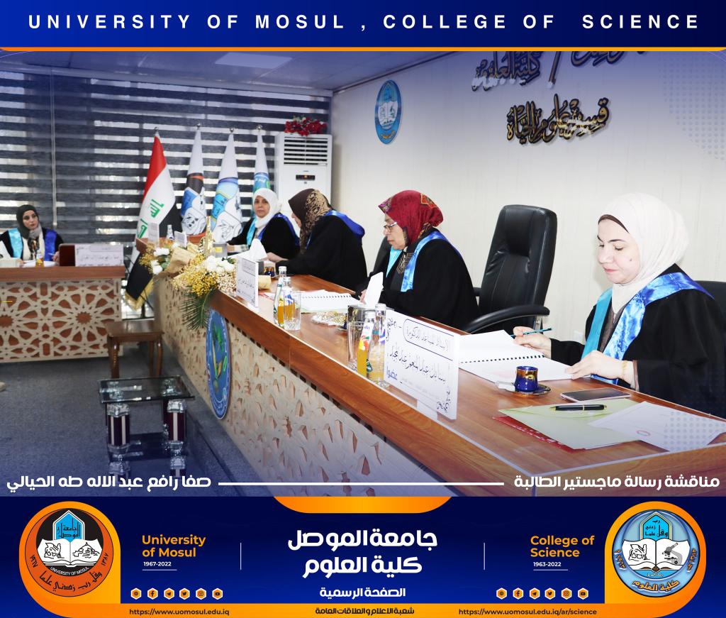 ناقش قسم علوم الحياة بكلية العلوم في جامعة الموصل رسالة ماجستير الموسومة ” التأثير الوقائي للبروبولس لسمية مستخلص بذور اللوز ( امجدالين ) في معايير الخصوبة لذكور الجرذان البالغة ” يوم الثلاثاء الموافق 27 كانون الأول 2022.حضر جانباً منها السيدة عميد الكلية الأستاذ الدكتورة هيام عادل إبراهيم والسيد المعاون العلمي والسيد رئيس القسم وعدد من تدريسي وطلبة القسم.تناولت الدراسة التي تقدمت بها الطالبة ( صفا رافع عبد الإله ) / فرع الحيوان عدد من المحاور منها :استخدام الامغدالين بجرع مختلفة وهو مركب طبيعي في ثمار المشمش واللوز المر يسبب سمية بسبب وجود السيانيد القاتل ، وبيان فعالية الدور الوقائي للعكبر للحد من سمية الجرع المختلفة من الامغدالين.أظهرت النتائج ظهور علامات عيانية وأيضاً نسجية تمثلت بالتنخر التجلطي وارتشاح خلوي وفرط تنسج ونزف دموي ، واحتقان ، واظهر تنظيم التعبير الجيني باستخدام تقنية PCR -Rt انخفاض لانزيمات الكلوتاثيون بيروكسيديز وSOD3 وكاتليز بالنسبة لجرع الامغدالين أما بجرعة العكبر كانت النتائج مرتفعة مشابه لمجموعة السيطرة ، أظهرت دراستنا أيضاً عن التعبير الكيميائى النسجي المناعي للدليل CD31 لتولد الأوعية في كبد الجرذان تعبيراً معتدلاً إلى عالي الكثافة ( اللون البني) .ترأس لجنة المناقشة الأستاذ المساعد الدكتورة ساجدة شريف حسين / كلية النور الجامعة وعضوية كل من الأستاذ المساعد الدكتورة الهام عبد الله علي والأستاذ المساعد الدكتورة سنابل عبد المنعم عبد المجيد وبإشراف الأستاذ المساعد الدكتورة فاطمة قاسم محمد.شعبة الإعلام والعلاقات العامةالثلاثاء 27 كانون الأول 2022