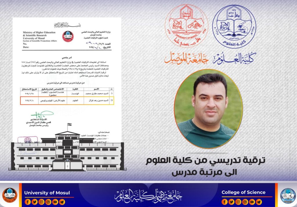 قدمت السيدة عميد كلية العلوم الأستاذ الدكتورة هيام عادل أبراهيم المحترمة كتاب شكر وتقدير الى الدكتور محمد موفق سحري لمشاركته في عضوية مناقشة الطالب.