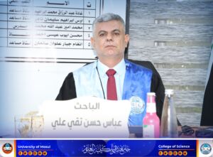 ناقش قسم علوم الحياة في كلية العلوم بجامعة الموصل، يوم الثلاثاء الموافق 2 أيلول 2025، رسالة الماجستير الموسومة ” التحري عن السموم البكتيرية كمؤشر لنوعية المياه في محافظة نينوى ” ، التي تقدم بها الطالب عباس حسن تقي علي من فرع الأحياء المجهرية.