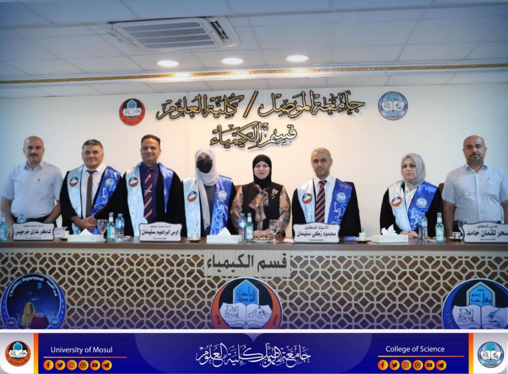 ترأس لجنة المناقشة الاستاذ الدكتور محسن أيوب عيسى أحمد ، وعضوية كل من الأستاذ المساعد الدكتور طلال سبهان صالح خضر والمدرس الدكتورة إيناس ياسين شهاب أحمد وبأشراف وعضوية الأستاذ المساعد الدكتور أنمار أحمد داؤود الطائي.