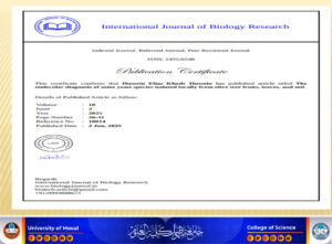 ناقش قسم علوم الحياة في كلية العلوم بجامعة الموصل يوم الأحد الموافق 13 تموز 2025 رسالة الماجستير الموسومة ” التشخيص الجزيئي لبعض انواع الخمائر المعزولة من ترب واوراق أشجار الزيتون ” ، حضر جانب منها السيدة عميد الكلية الاستاذ الدكتورة هيام عادل ابراهيم المحترمة و السيد المعاون العلمي والسيد رئيس قسم علوم الحياة وعدد من تدريسي الكلية المحترمين.
