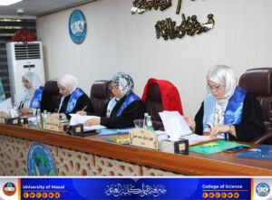 ترأس لجنة المناقشة الاستاذ الدكتورة هديل أحمد خلف العامري ، وعضوية كل من الاستاذ المساعد الدكتورة رنا طارق يحيى الطائي والمدرس الدكتورة جهان موفق سعيد الراوي، وبأشراف وعضوية الاستاذ المساعد الدكتورة بادية عبدالرزاق ملا عبيدة.