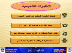 ناقش قسم علوم الحياة في كلية العلوم بجامعة الموصل يوم الأحد الموافق 13 تموز 2025 رسالة الماجستير الموسومة ” التشخيص الجزيئي لبعض انواع الخمائر المعزولة من ترب واوراق أشجار الزيتون ” ، حضر جانب منها السيدة عميد الكلية الاستاذ الدكتورة هيام عادل ابراهيم المحترمة و السيد المعاون العلمي والسيد رئيس قسم علوم الحياة وعدد من تدريسي الكلية المحترمين.