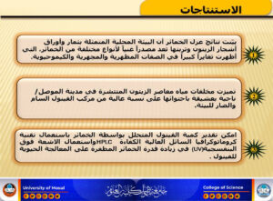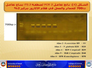 تناولت الرسالة التي تقدم بها الطالب ( حسين الياس خضر حسين المحمد ) ، الحصول على 60 عزلة محلية من الخمائر من ثمار وأوراق أشجار الزيتون وتربتها. شخصت العزلات بالاعتماد على الاختبارات المظهرية والمزرعية والكيموحيوية وجرى تأكيد التشخيص باستخدام تقنية (PCR)Polymerase Chain Reaction استناداً إلى صفاتها الجزيئية بالاعتماد على منطقة Transcribed Spacer(ITS) وأظهرت النتائج أنها تنتمي إلى (4) أنواع مختلفًة من الخمائر