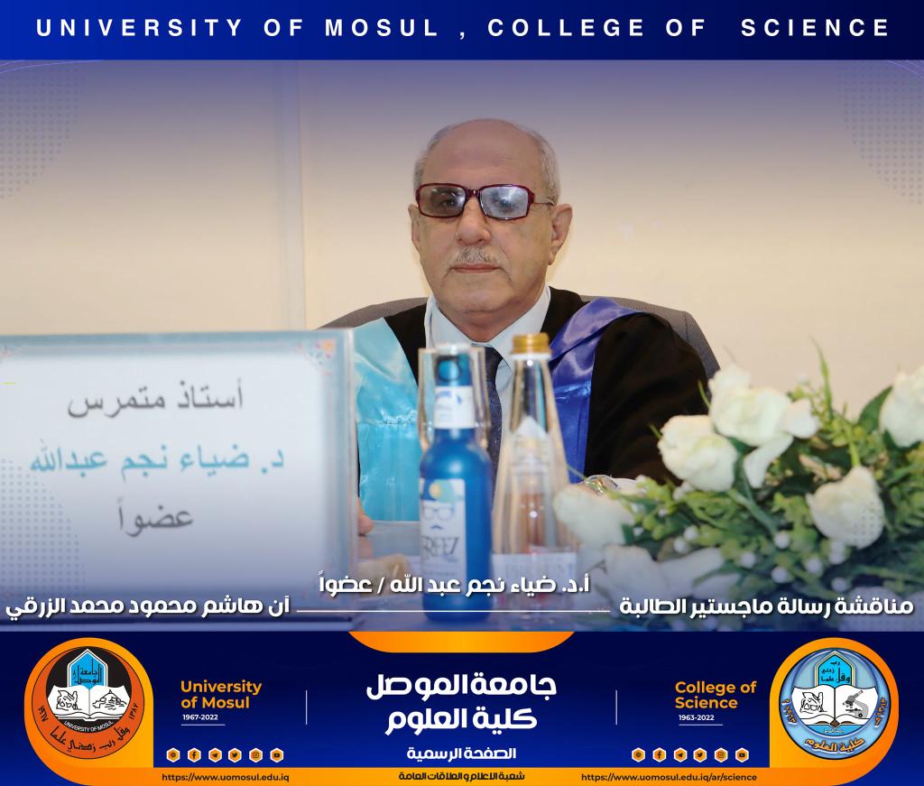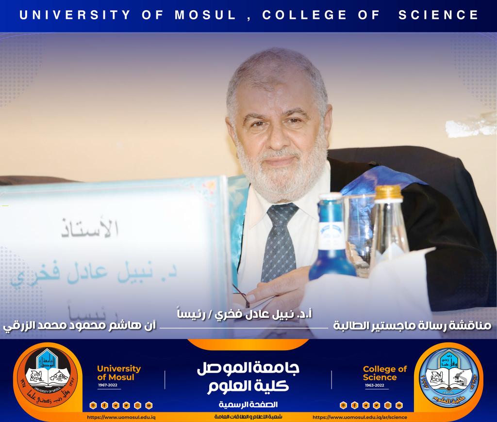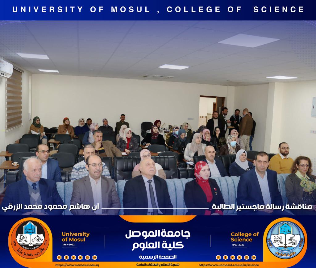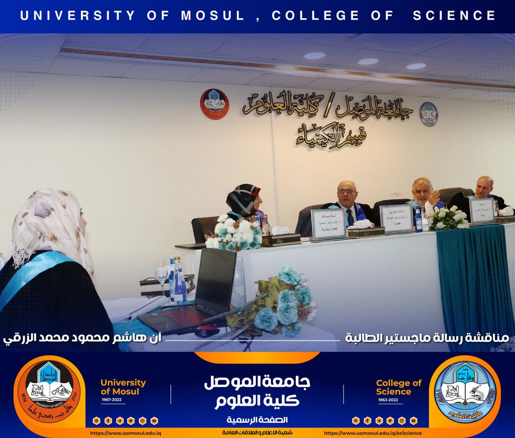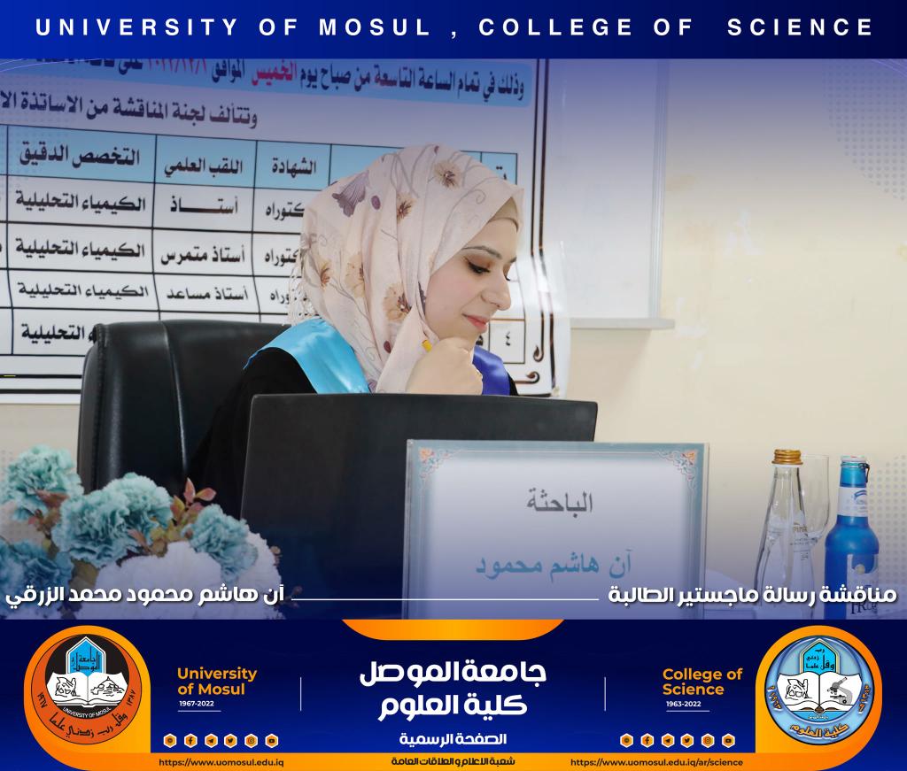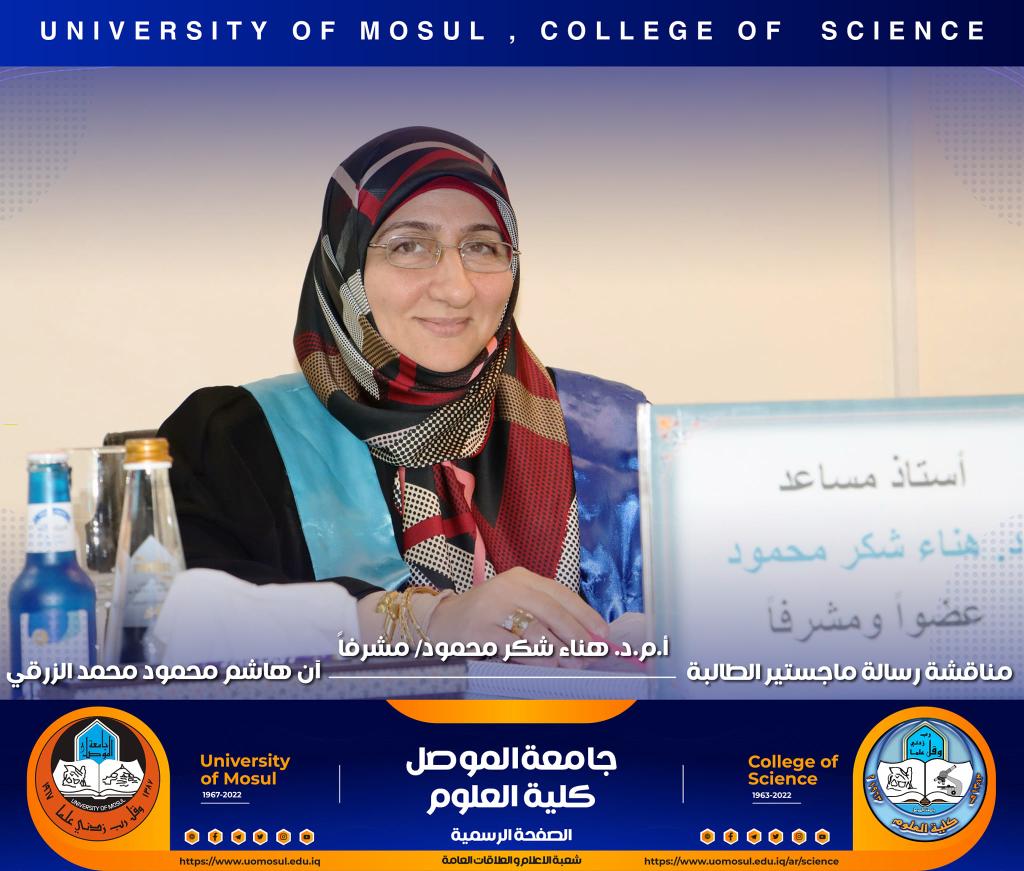 ناقش قسم الكيمياء في كلية العلوم بجامعة الموصل رسالة الماجستير الموسومة ” التقدير الطيفي الميروبنيم في المستحضرات الصيدلانية والميترونيدازول في كل من الدم والمستحضرات الصيدلانية” يوم الخميس الموافق للأول من كانون الأول 2022.حضر جانباً منها الأستاذ الدكتورة هيام عادل إبراهيم الطائي عميد الكلية والسيد المعاون الاداري والسيد رئيس القسم وعدد من تدريسي الكلية .تناولت الرسالة التي تقدمت بها الطالبة ( آن هاشم محمود ) في فرع الكيمياء التحليلية طريقة طيفية مبتكرة لتقدير الميروبنيم حيث تعتمد الطريقة على أكسدة الميروبنيم بوساطة بيرايودات البوتاسيوم ثم اقترانه مع كاشف بارا أمينو ثنائي فنيل أمين في وسط من حامض الهيدروكلوريك ليتكون ناتج ذو لون أزرق مخضر. وتم تطبيق الطريقة المقترحة بنجاح لتقدير الميروبنيم في مستحضراته الصيدلانية بشكل حقن.تطرقت الدراسة كذلك الى تطوير طريقة لتقدير الميروبنيم في حالته النقية وفي مستحضراته الصيدلانية حيث تعتمد الطريقة على أكسدة الميروبنيم في وسط من حامض الهيدروكلوريك، كما تم استخدام طريقة طيفية لتقدير الميترونيدازول بعد اختزاله إلى مناظرةٍ بشكل أمين حيث تعتمد الطريقة على ازوتة كاشف بارا أمينو ثنائي فنيل أمين ثم اقتران الكاشف المؤزوت مع الميترونيدازول المختزل في وسط قاعدي وبوجود عامل الشد السطحي (CPC) Cetyl pyredinium chloride وتم تطبيق الطريقة المقترحة بنجاح لتقدير الميترونيدازول في مستحضراته الصيدلانية بشكل حبوب و حقن كما تم تطبيق الطريقة على عينات دم الإنسان بعد أخذه لجرعة فموية واحدة ( 500ملغم ) .ترأس لجنة المناقشة الأستاذ الدكتور نبيل عادل فخري من جامعة صلاح الدين أربيل وعضوية كل من الأستاذ الدكتور ضياء نجم عبد الله و الأستاذ المساعد الدكتور سعد حساني سلطان ، وبإشراف وعضوية الأستاذ المساعد الدكتورة هناء شكر محمود.شعبة الإعلام والعلاقات العامةالجمعة 2 كانون الأول 2022