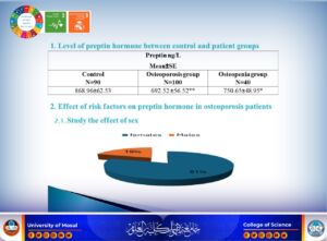 وأظهرت النتائج وجود علاقة خطية بين مستويات البريبتين والمتغيرات السريرية المقاسة باستخدام التحليل الإحصائي، إلى جانب انخفاض مستويات البريبتين لدى المرضى مقارنة بالأصحاء. كما ركزت الدراسة على التعبير الجيني لهورمون البريبتين، حيث تم الكشف عن عدد من الطفرات في الحامض النووي لمرضى هشاشة العظام ولين العظام، وتم تسجيل طفرة جينية في تسلسل الحامض النووي البشري في بنك الجينات الدولي تحت الرقم LC859842.
