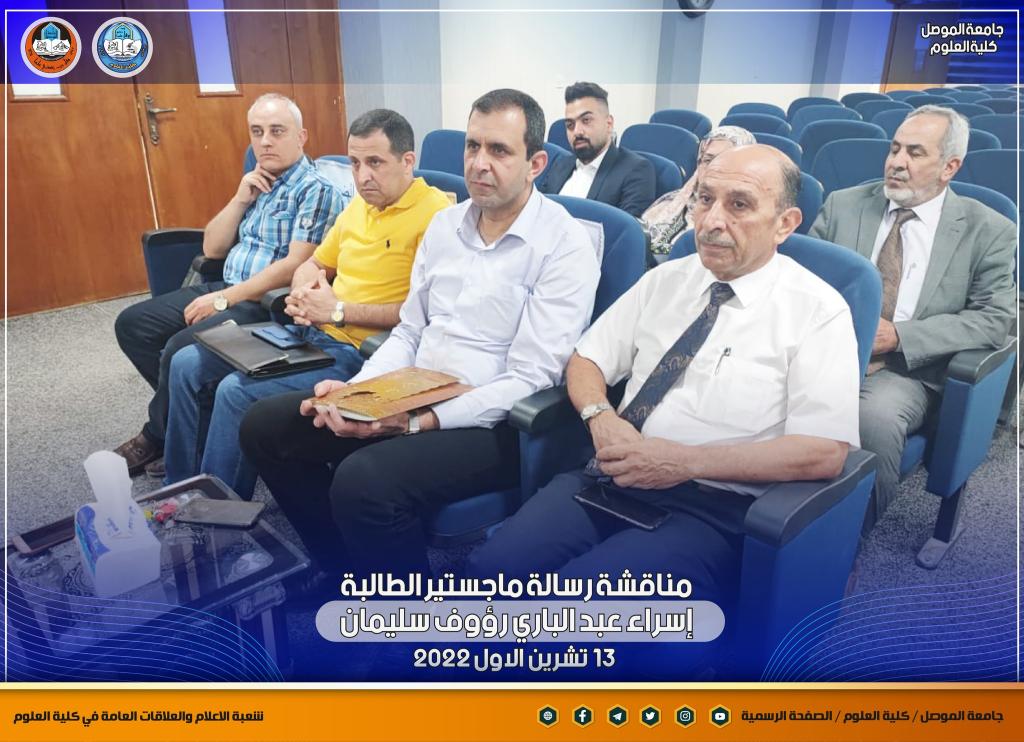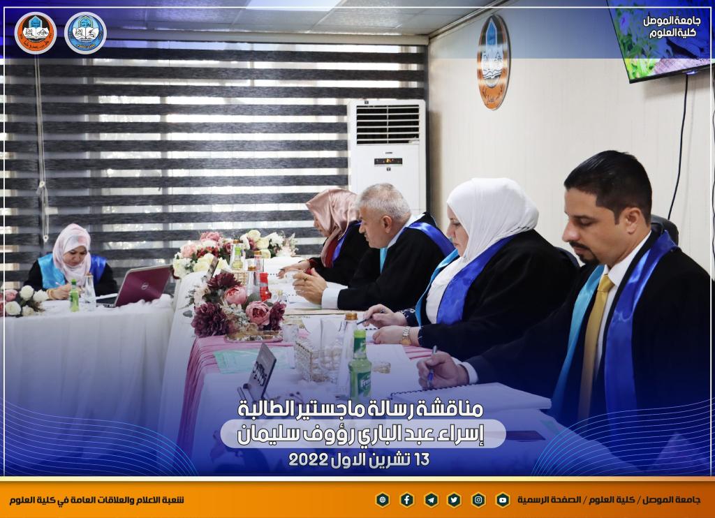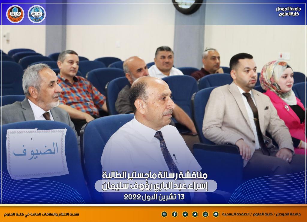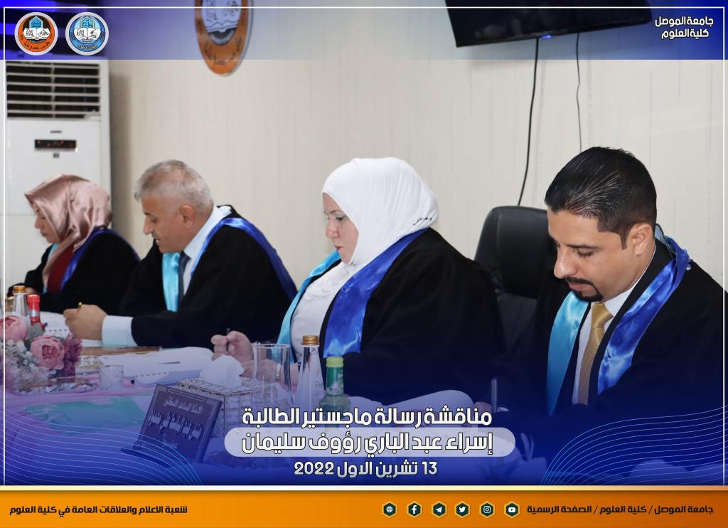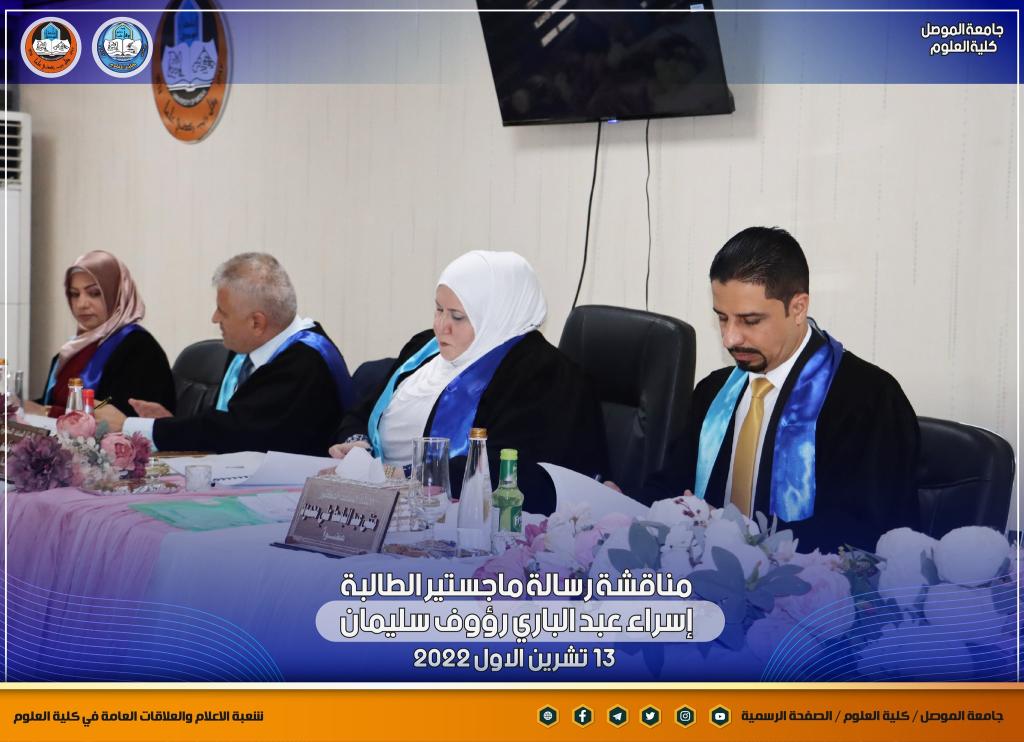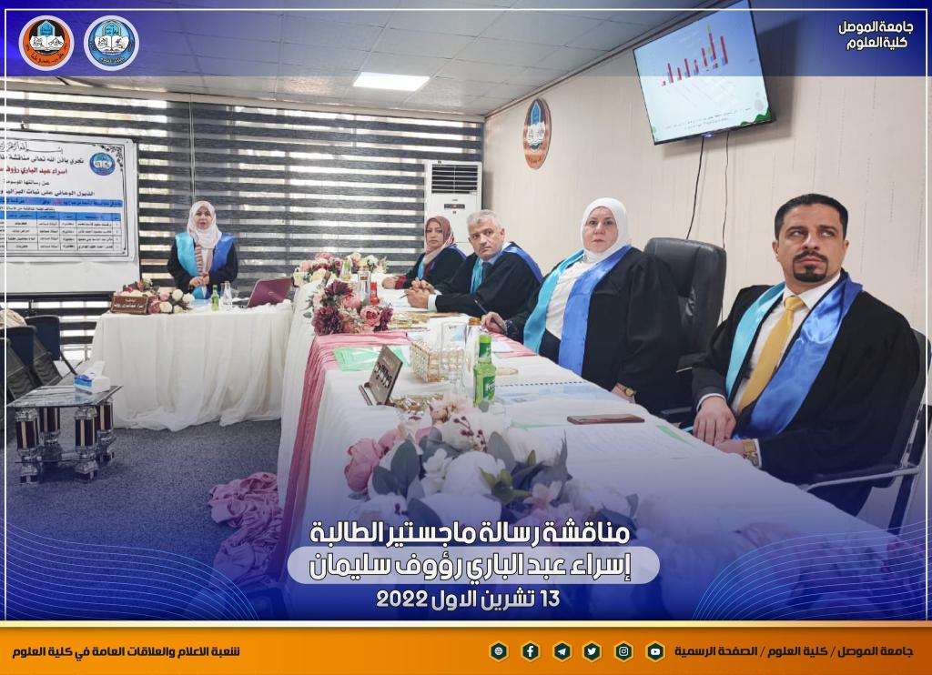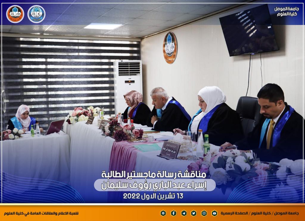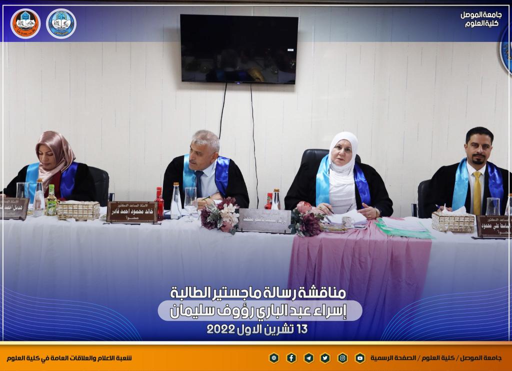 ناقشت كلية العلوم في جامعة الموصل يوم الخميس الموافق 13 تشرين الأول 2022 رسالة الماجستير الموسومة ” الذبول الوعائي على نبات البزاليا ومقاومته احيائياً ” حضر جانباً منها السيد المعاون الاداري نيابة عن السيدة عميد الكلية إضافة إلى السيد رئيس القسم و عدد من تدريسي الكلية.تناولت الدراسة التي تقدمت بها الطالبة ( اسراء عبد الباري رؤوف ) فرع علم النبات عدد من المحاور اذ تضمنت الدراسة تأثير الفطريات Fusarium solani و Fusarium verticilliodes و Fusarium tricinctum على نبات البــــــــــــــــازلاء ومقاومته احيائياً باستخدام المقاوم الحيوي Trichoderma harzianum حيث تم اختبار القدرة التضادية للمقاوم الحيوي ضد الفطريات الثلاثة المدروسة مختبرياً في الأطباق.أظهرت نتائج النســـــــبة المئوية للإنبات تفوق الصنف الهولندي على الصنف الفرنسي في جميع المعاملات و تفوقت المعاملة بالمقــــــــــــــاوم الحيوي T. harzianum معنوياً على بقية المعاملات .هدفت الدراسة إلى دراسة مرض الذبول الوعائي المتسبب عن بعض أنواع الفطر Fusarium spp على بعض أصناف البازلاء ، و دراسة حساسية أصناف البازلاء المزروعة في محافظة نينوى تجاه أنواع الفطر Fusarium spp. هي F. solani و F. tricinctum و F. verticilliodes إضافة إلى تقيم كفاءة المقاوم الحيوي Trichoderma harzianum تجاه مسببات الذبول الوعائي المدروسة في المختبر والبيت الزجاجي و تقدير عوامل استحثاث المقاومة في النباتات المصابة بالذبول الوعائي.ترأس لجنة المناقشة الأستاذ المساعد الدكتورة ورقاء سعيد قاسم وعضوية كل من الأستاذ المساعد الدكتور خالد محمود أحمد من جامعة صلاح الدين – أربيل و الأستاذ المساعد الدكتور مثنى عبد الباسط علي و بإشراف الأستاذ المساعد الدكتورة هديل أحمد العامري.شعبة الإعلام والعلاقات العامةالخميس 13 تشرين الأول 2022