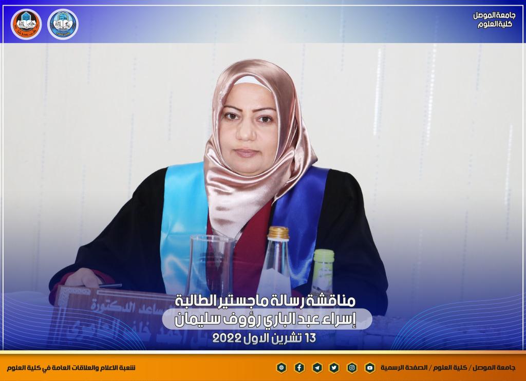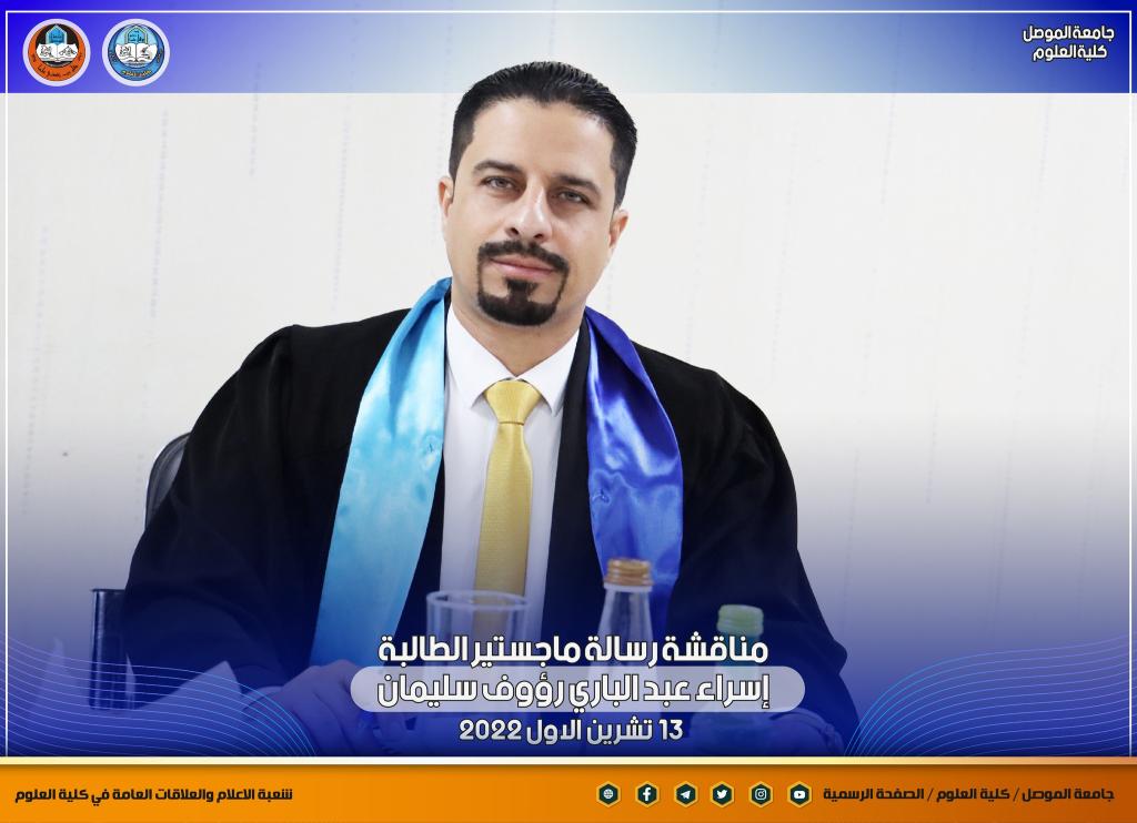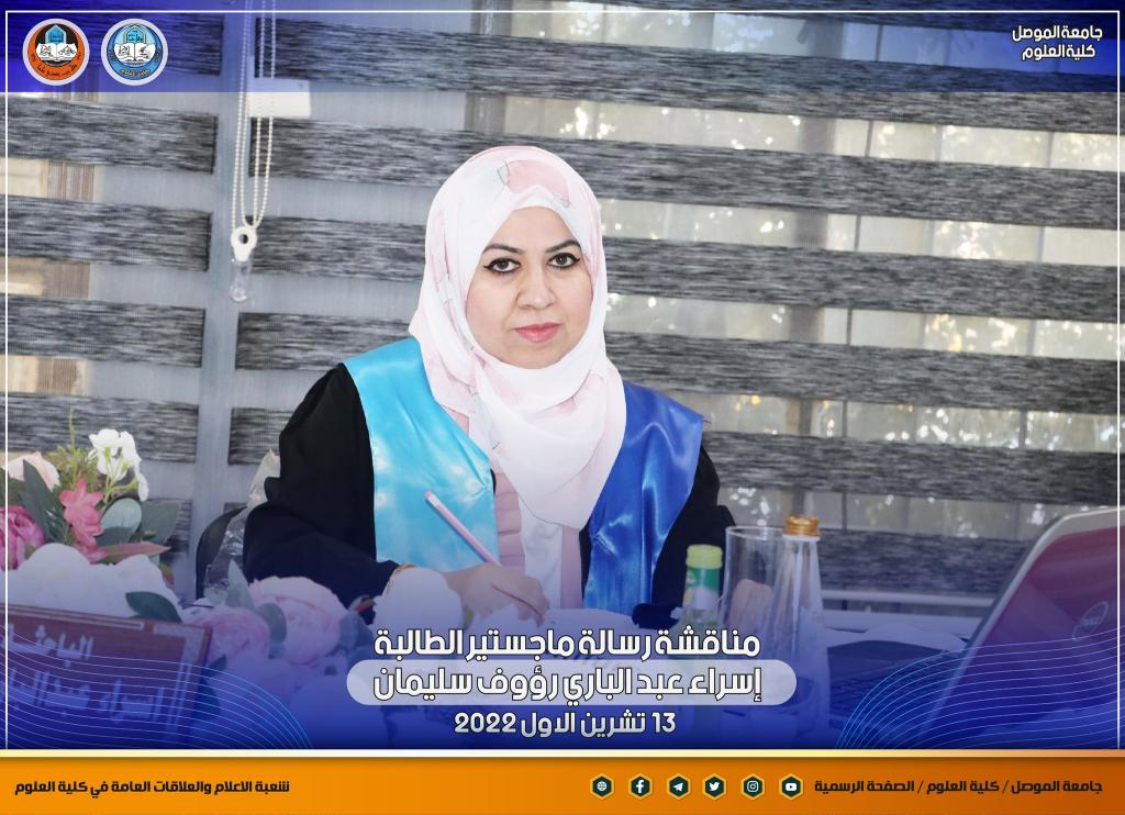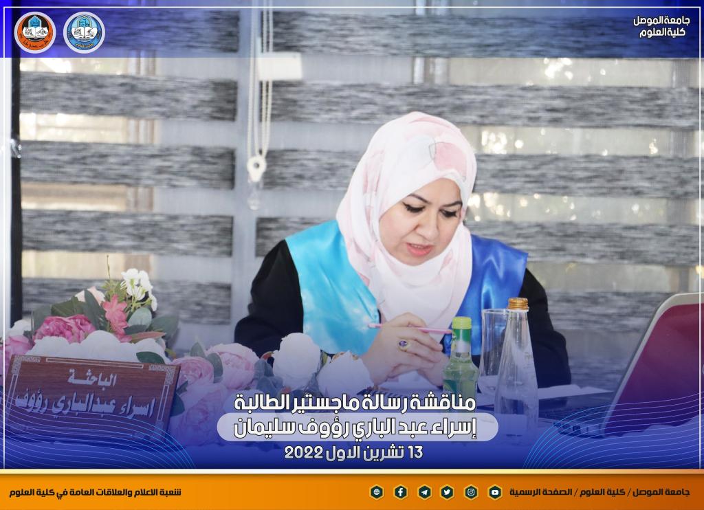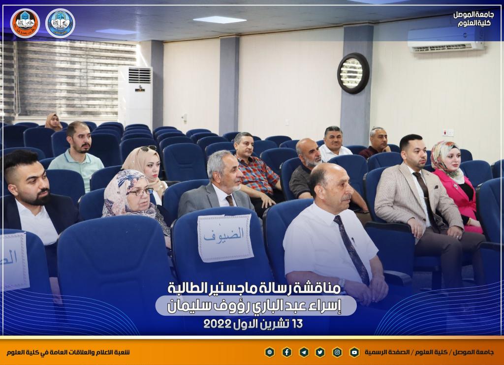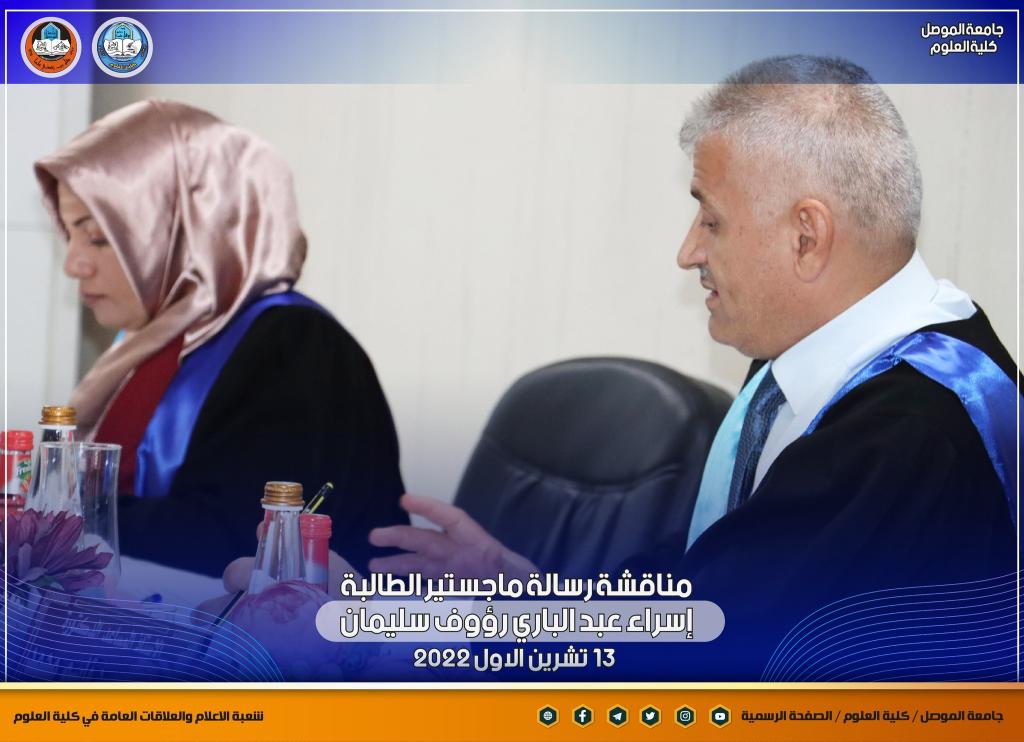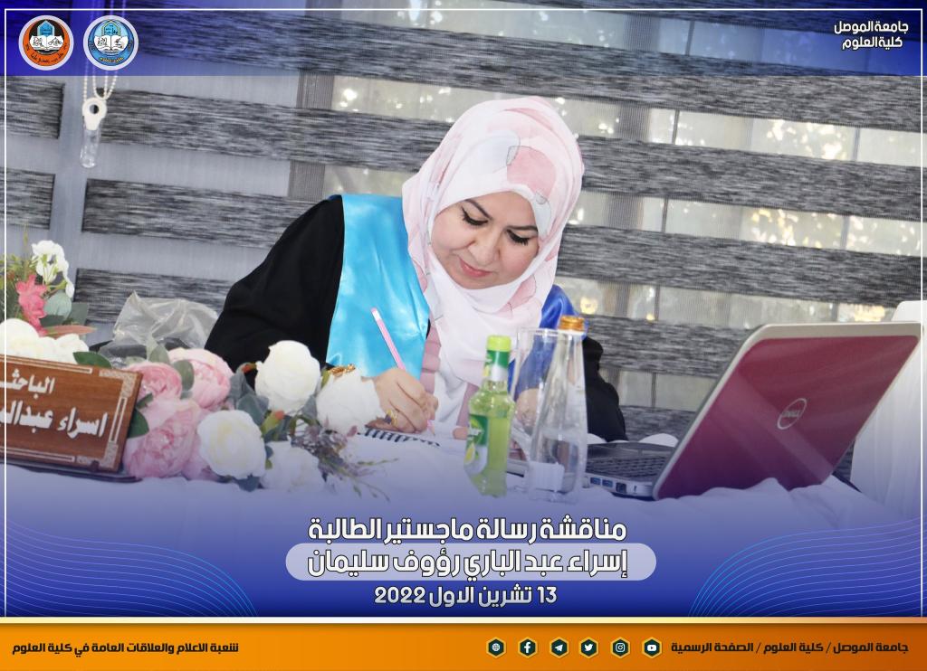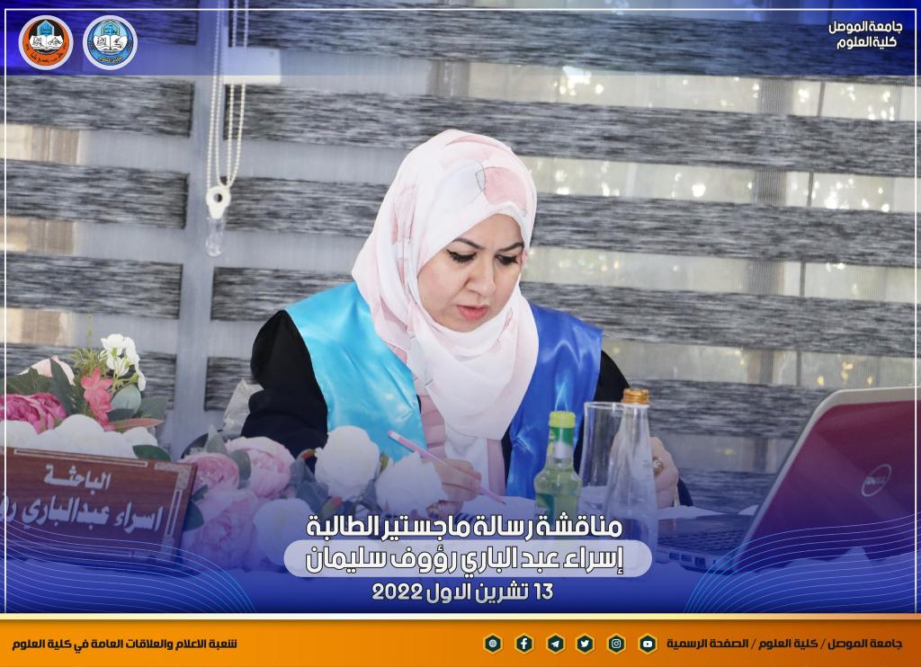 ناقشت كلية العلوم في جامعة الموصل يوم الخميس الموافق 13 تشرين الأول 2022 رسالة الماجستير الموسومة ” الذبول الوعائي على نبات البزاليا ومقاومته احيائياً ” حضر جانباً منها السيد المعاون الاداري نيابة عن السيدة عميد الكلية إضافة إلى السيد رئيس القسم و عدد من تدريسي الكلية.تناولت الدراسة التي تقدمت بها الطالبة ( اسراء عبد الباري رؤوف ) فرع علم النبات عدد من المحاور اذ تضمنت الدراسة تأثير الفطريات Fusarium solani و Fusarium verticilliodes و Fusarium tricinctum على نبات البــــــــــــــــازلاء ومقاومته احيائياً باستخدام المقاوم الحيوي Trichoderma harzianum حيث تم اختبار القدرة التضادية للمقاوم الحيوي ضد الفطريات الثلاثة المدروسة مختبرياً في الأطباق.أظهرت نتائج النســـــــبة المئوية للإنبات تفوق الصنف الهولندي على الصنف الفرنسي في جميع المعاملات و تفوقت المعاملة بالمقــــــــــــــاوم الحيوي T. harzianum معنوياً على بقية المعاملات .هدفت الدراسة إلى دراسة مرض الذبول الوعائي المتسبب عن بعض أنواع الفطر Fusarium spp على بعض أصناف البازلاء ، و دراسة حساسية أصناف البازلاء المزروعة في محافظة نينوى تجاه أنواع الفطر Fusarium spp. هي F. solani و F. tricinctum و F. verticilliodes إضافة إلى تقيم كفاءة المقاوم الحيوي Trichoderma harzianum تجاه مسببات الذبول الوعائي المدروسة في المختبر والبيت الزجاجي و تقدير عوامل استحثاث المقاومة في النباتات المصابة بالذبول الوعائي.ترأس لجنة المناقشة الأستاذ المساعد الدكتورة ورقاء سعيد قاسم وعضوية كل من الأستاذ المساعد الدكتور خالد محمود أحمد من جامعة صلاح الدين – أربيل و الأستاذ المساعد الدكتور مثنى عبد الباسط علي و بإشراف الأستاذ المساعد الدكتورة هديل أحمد العامري.شعبة الإعلام والعلاقات العامةالخميس 13 تشرين الأول 2022