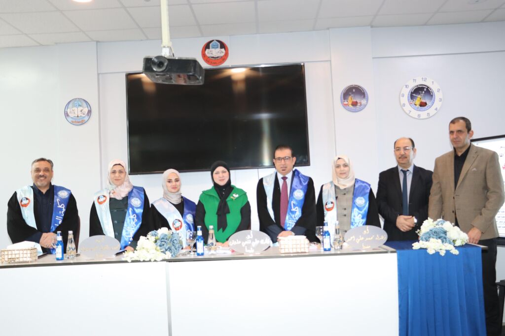 ترأس لجنة المناقشة الأستاذ الدكتورة ابتهاج زكي سليمان وعضوية كل من الأستاذ المساعد الدكتور لقمان إدريس محمود و الدكتورة رؤى قاسم يحيى وبأشراف وعضوية الأستاذ الدكتور أسعد فيصل خطاب.