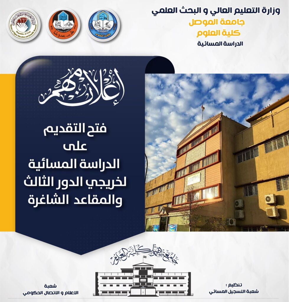 اعادة فتح التقديم على الدراسة المسائية لخريجي الدور الثالث والمقاعد الشاغرة لبقية الأدوار