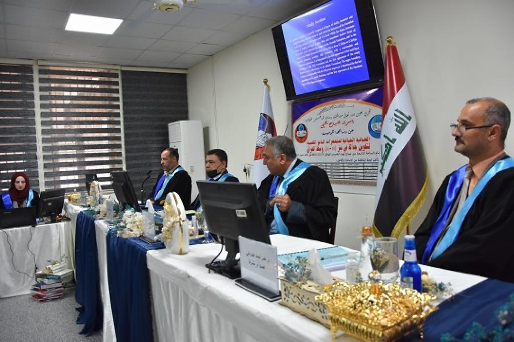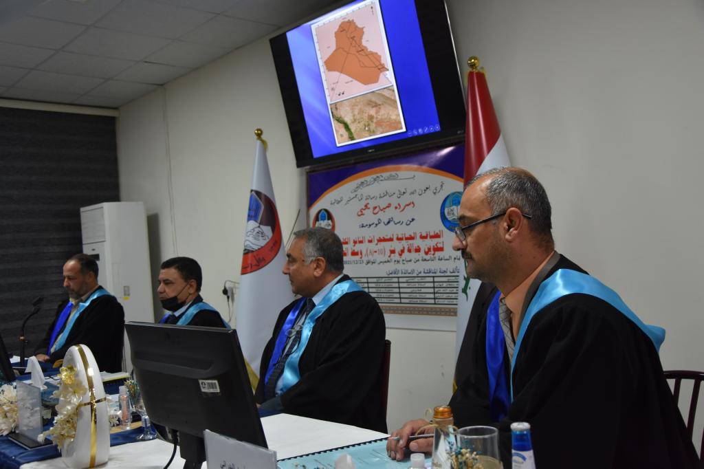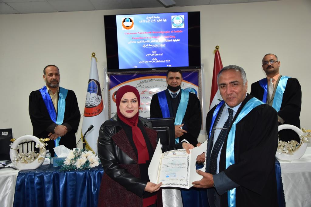 ناقشت كلية العلوم في جامعة الموصل يوم الخميس الموافق ٢٣ كانون الأول 2021 رسالة الماجستير الموسومة ” الطباقية الحياتية لمتحجرات النانو الكلسية لتكوين جدالة في بئر ( AJ-10 ) وسط العراق ” حضرت جانبا منها السيدة عميد الكلية الأستاذ المساعد الدكتورة هيام عادل إبراهيم الطائي ، والسيد معاون العميد للشؤون الإدارية الدكتور عمر عادل شريف والسيد رئيس قسم علوم الأرض الدكتور زيد عبدالوهاب ملك و عدداً من تدريسي الكلية .هدفت الرسالة التي تقدمت بها الطالبة ( إسراء صباح يحيى) من قسم علوم الأرض إلى دراسة استخراج متحجرات النانو الكلسية من التتابعات الطباقية لتكوين جدالة الذي يظهر ضمن المقطع الطباقي لبئر (Aj-10)، في حقل عجيل النفطي بمحافظة صلاح الدين وسط العراق، وأدت الدراسة الى تشخيص(71) نوع من هذه المتحجرات النانوية ، وبعد تحديد انتشارها الطباقي ضمن المقطع المدروس حدد خمسة أنطقة حياتية لها مكنت من تحديد العمر الجيولوجي الدقيق لهذه التتابعات الصخرية ، بالإضافة الى استقراء المناخ السائد في زمن ترسيب التكوين ( قبل حوالي 40-50 مليون سنة ) بمناخ استوائي .ترأس لجنة المناقشة أ.م.د. عبدالله سلطان شهاب ، و عضوية كل من د. محفوظ عبدالله علي ، و أ.م.د. سلام إسماعيل مرهون الدليمي ، وإشراف أ.م.د. عمر أحمد مولود البدراني .وقدّمت السيدة عميد الكلية كتاب شكر وتقدير إلى الدكتور سلام إسماعيل مرهون ، من كلية العلوم / جامعة بغداد ؛ لتكبده عناء السفر وحضور المناقشة .