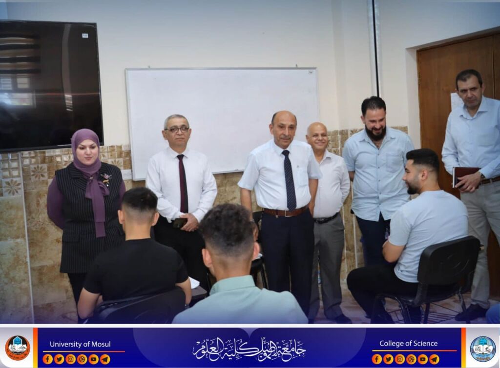 صباح يوم الخميس الموافق 4 تموز 2025 ، حضرت جانباً منها السيدة عميد كلية العلوم الأستاذ الدكتورة (هيام عادل إبراهيم الطائي) المحترمة، والسادة معاونا العميد للشؤون العلمية والإدارية، والأستاذ (خيري الحميدان) مستشار السيد محافظ نينوى لشؤون التخطيط، وعدد من تدريسي الكلية وطلبة الدراسات العليا في القسم.