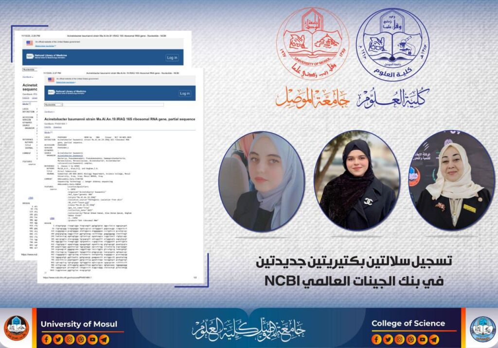 ناقش قسم علوم الحياة في كلية العلوم / جامعة الموصل رسالة الماجستير الموسومة ” التحري عن العلاقة ما بين تواجد النظام الإفرازي من النوع الثالث والمقاومة في بكتريا الزائفة الزنجارية المعزولة من مصادر سريرية ” وذلك يوم الأحد الموافق 4 كانون الثاني 2026.