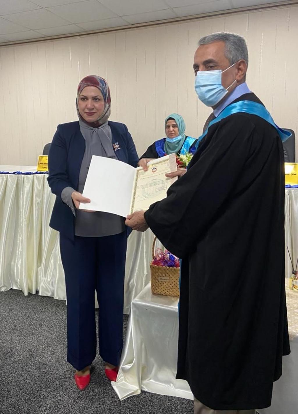 ناقش قسم علوم الحياة في كلية العلوم بجامعة الموصل يوم الأربعاء الموافق 1 أيلول 2021 رسالة الماجستير الموسومة“ The relationship between some adipose tissue hormones with increase and decrease thyroid gland hormones ”حضر جانباً منها الأستاذ المساعد الدكتورة هيام عادل الطائي عميد الكلية والسادة معاوني العميد و السيد رئيس القسم .تناولت الدراسة التي تقدمت بها الطالبة ( أزهار يونس ذنون عبدالله ) علاقة بعض الهرمونات المفرزة من النسيج الدهني وتضمنت كل من هرموني الاديبونكتين والفسفاتين مع اضطرابات الغدة الدرقية سواء من ناحية زيادة افرازاتها من هرمونات T4 و T3 وكذلك هرمون الغدة النخامية TSH أو نقصانها.تطرقت الدراسة الى علاقة تلك الهرمونات مع مرتسم الدهون وايجاد علاقة ارتباط بينهم وبينت نتائج الدراسة علاقة طردية قوية بين زيادة هرمون الفسفاتين وهرمون TSH وعكسية مع هرمونات الغدة الدرقية على العكس من ذلك اوجدت الدراسة علاقة عكسية مع هرمون الاديبونكتين مع TSH وطردية مع هرمونات الغدة الدرقية اما الدهون فكانت بعلاقة عكسية مع هرمونات الغدة الدرقية متمثلة بكل من مستوى الكولستيرول الكلي و LDL-c و VLDL-c عدا HDL-c الذي اظهر علاقة طردية مع هرمونات الغدة الدرقية وعكسية مع هرمون TSH .أوصت الدراسة بإجراء دراسة معمقة لدراسة هرمونات النسيج الدهني الاخرى ودراسة علاقتها مع اضطراب الغدة الدرقية او علاقتها مع امراض اخرى كتصلب الشرايين او مرض داء السكري.ترأس لجنة المناقشة : أ. د. صالح محمد ارحيم من كلية العلوم / جامعة كركوك وعضوية كل من أ. د. اشواق أحمد حسن و م. د. هيثم لقمان شهاب الحيالي. و بإشراف وعضوية م. د. عبير عطاالله عايد الحديدي.تم منح أ. د. صالح محمد ارحيم كتاب شكر من السيدة عميد كلية العلوم ؛ لتكبده عناء السفر ومشاركته في مناقشة رسالة الطالبة.