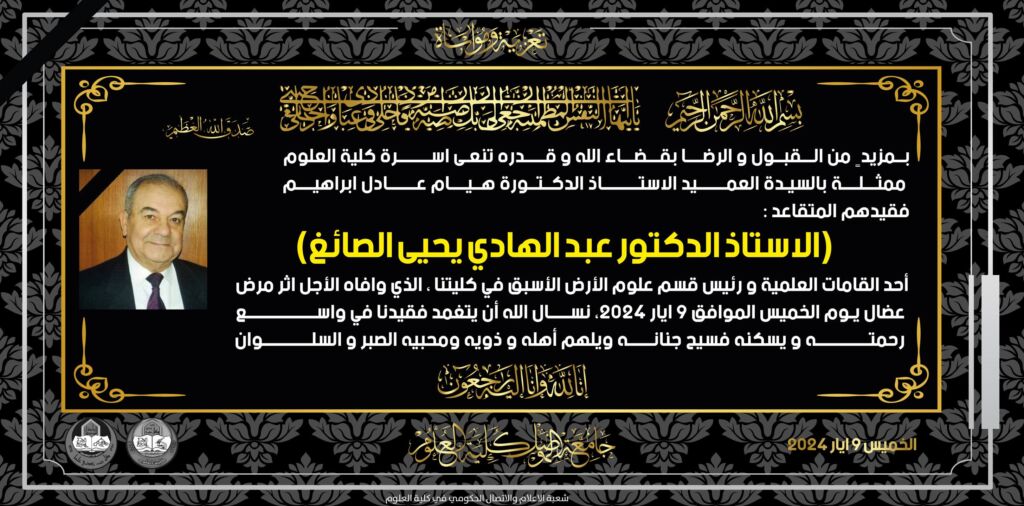 ناقش قسم علوم الأرض في كلية العلوم بجامعة الموصل رسالة الماجستير الموسومة ” المعدنية والجيوكيمياء البيئية والتأثيرات الصحية للغبار الساقط على أوراق الأشجار في المناطق الحضرية لمدينة أربيل / شمالي العراق ” يوم الخميس الموافق 9 آيار 2024 ، حضر جانباً منها السيدة عميد كلية العلوم الأستاذ الدكتورة (هيام عادل إبراهيم الطائي) والسيدان معاونا العميد للشؤون العلمية والإدارية والسيد رئيس قسم علوم الأرض وعدد من تدريسي الكلية.