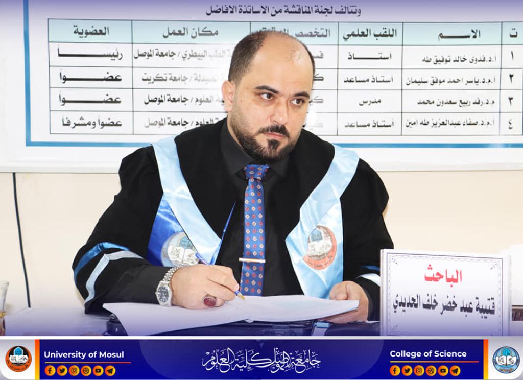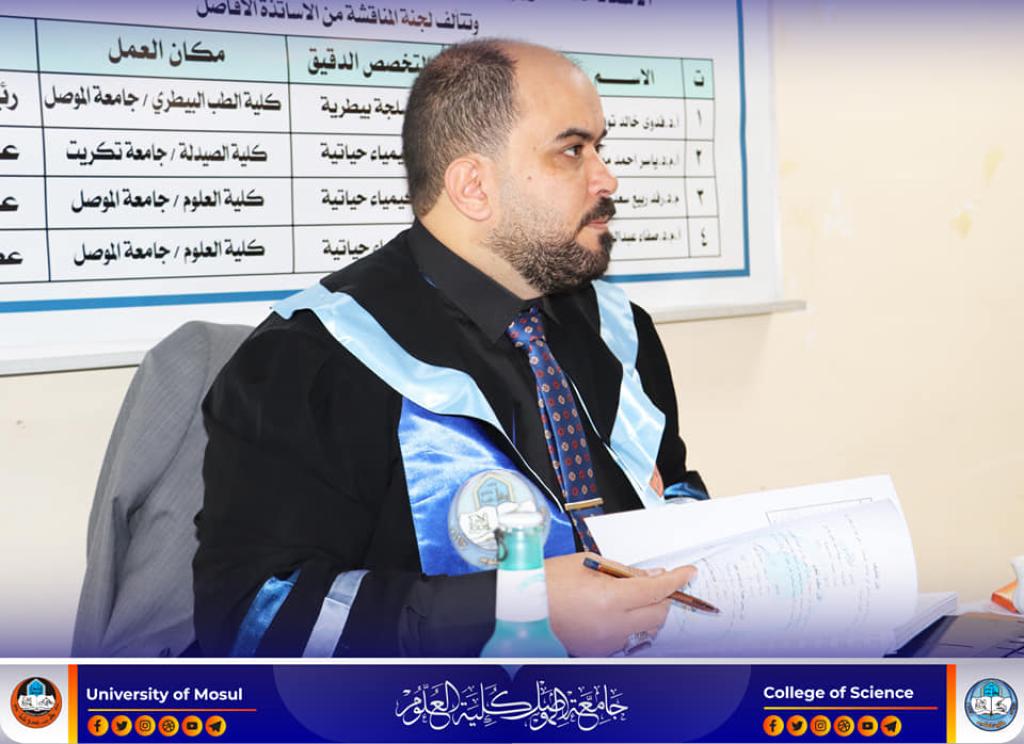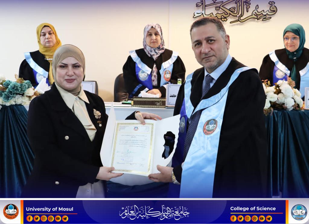ناقش قسم الكيمياء بكلية العلوم في جامعة الموصل رسالة ماجستير بعنوان (دراسة تاثير استئصال المرارة على بعض المتغيرات الكيموحيوية في النساء قبل وبعد سن اليأس في مدينة الموصل) يوم الثلاثاء الموافق 21 شباط 2023.حضر جانباً منها السيدة العميد الاستاذ الدكتورة هيام عادل ابراهيم و معاونيها للشؤون العلمية و الادارية والسيد رئيس القسم وعدد من تدريسي الكلية.تناولت الرسالة التي تقدم بها الطالب (قتيبة عبد خضر خلف الحديدي) في فرع الكيمياء الحياتية ، التزايد في أعداد إصابات النساء بحصوات المرارة، ومن ثم استئصالها في مدينة الموصل فقد تضمنت الدراسة تقدير عدد من المتغيرات الكيموحيوية منها فيتامينD3(الكوليكالسيفيرول) ، وهورمون الاوستيوبونتين ، والكالسيتونين ، والبارا ثايرويد وهورمون الايسترادايول ، كذلك تقدير فعالية أنزيمي الگاما گلوتاميل ترانسفيريز و الفوسفاتيز القاعدي فضلاً عن تقدير تركيز كل من الكوليسترول الكلي ، الدهون الثلاثية ، البروتين الدهني عالي الكثافة وواطئها ، فضلاً عن اللايبوبروتين الدهني واطئ الكثافة جداً وبروتين سي التفاعلي وتركيز البيليروبين الكلي و الكالسيوم فضلاً عن حساب قيمة مؤشر كتلة الجسم للمجاميع الخاضعة للدراسة .توصلت الدراسة الى عدة نتائج منها وجود ارتباط معنوي سالب بين كل من فيتامين D3 (الكوليكالسيفيرول) مع الكوليسترول الكلي ( P≤ 0.05 , R= – 0.0314) من جهة وفيتامين D3 مع الدهون الثلاثية ( P≤0.01, R = – 0.503) من جهة أخرى لعينات المرضى قبل سن اليأس.ترأس لجنة المناقشة الاستاذ الدكتورة فدوى خالد توفيق طه وعضوية كل من الاستاذ المساعد الدكتور ياسر احمد موفق سليمان من جامعة نكريت و الدكتورة رفد ربيع سعدون محمد ، وباشراف وعضوية الاستاذ المساعد الدكتورة صفاء عبد العزيز طه امين.شعبة الإعلام والعلاقات العامةالثلاثاء 21 شباط 2023