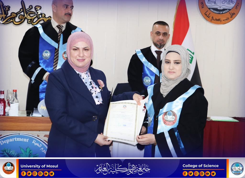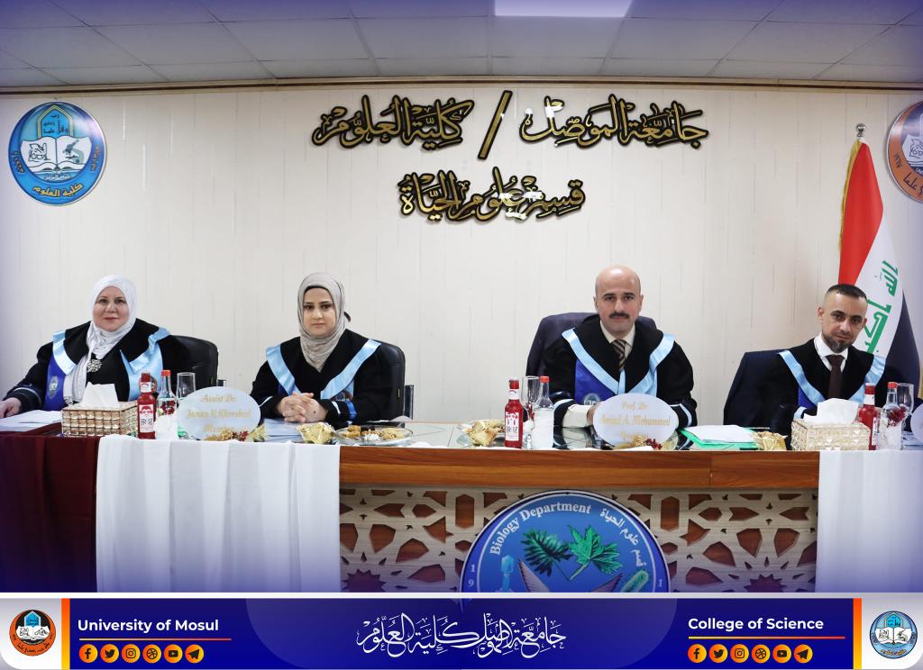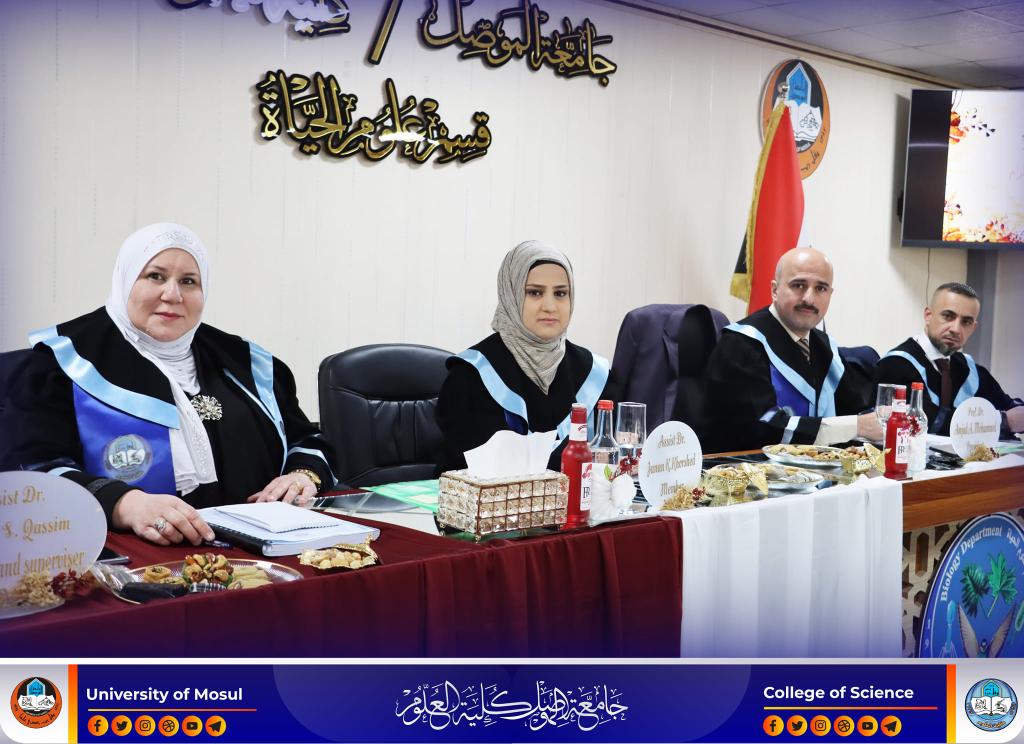 ناقش قسم علوم الحياة بكلية العلوم في جامعة الموصل رسالة ماجستير بعنوان ” تأثير دقائق الفضة النانوية على امراضية بعض الممرضات الفطرية النباتية ” يوم الثلاثاء الموافق 28 شباط 2023.حضر جانباً منها السيدة عميد الكلية الأستاذ الدكتورة هيام عادل إبراهيم والسادة معاوني العميد والسيد رئيس القسم وعدد من تدريسي الكلية.تناولت الدراسة التي تقدم بها الطالب ( علي هادي حمود محمد ) من فرع النبات عدة محاور منها : القيام باختبار المقدرة الامراضية لعزلات فطرية عائدة إلى الانواع Alternaria و Fusarium باستخدام بذور الفجل وذبول الافرع وتبقع الأوراق، و استخدام تقنية HPLC لتحديد السموم لرواشح العزلات الفطرية اضافة الى اختبار كفاءة دقائق الفضة النانوية على امراضية الانواع الفطرية.بينت النتائج وجود تأثير لدقائق الفضة النانوية في نمو مستعمرات الفطريات الممرضة ووجود علاقة طردية بين تأثير تركيز جسيمات الفضة النانوية واقطار نمو لمستعمرات الفطروتأثيرها على الكتلة الحية للفطر ودالة الاس الهيدروجيني في الوسط السائل.كما توصلت الدراسة الى ان الدقائق النانوية الحيوية للكركم يمكن استعمالها كمبيدات امنة للبيئة ضد الانواع الفطرية المختلفة، مما يخفف من التحديات في ادارة المرض بخفض المدخلات من المواد الكيميائية إلى الانظمة الزراعية.ترأس لجنة المناقشة الأستاذ الدكتور أمجد عبد الهادي محمد علي وعضوية كل من الأستاذ المساعد الدكتورة جنان قاسم خورشيد رضا من الجامعة التقنية الشمالية والمدرس الدكتور علاء حميد محمد عبد الله وبإشراف الأستاذ المساعد الدكتورة ورقاء سعيد قاسم.شعبة الإعلام والعلاقات العامةالثلاثاء 28 شباط 2023