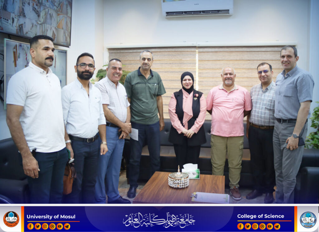 وفي ختام المناقشة، قدّم السيد رئيس القسم نيابةً عن السيدة عميد كلية العلوم الأستاذ الدكتورة هيام عادل إبراهيم المحترمة ، كتاب شكر وتقدير إلى الدكتورة آمنة جاسم من كلية طب جامعة نينوى، تثميناً لجهودها العلمية ومشاركتها الفاعلة في لجنة المناقشة.