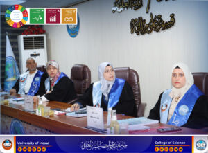 وفي ختام المناقشة، قدّم السيد رئيس القسم نيابةً عن السيدة عميد كلية العلوم الأستاذ الدكتورة هيام عادل إبراهيم المحترمة ، كتاب شكر وتقدير إلى الدكتورة آمنة جاسم من كلية طب جامعة نينوى، تثميناً لجهودها العلمية ومشاركتها الفاعلة في لجنة المناقشة.