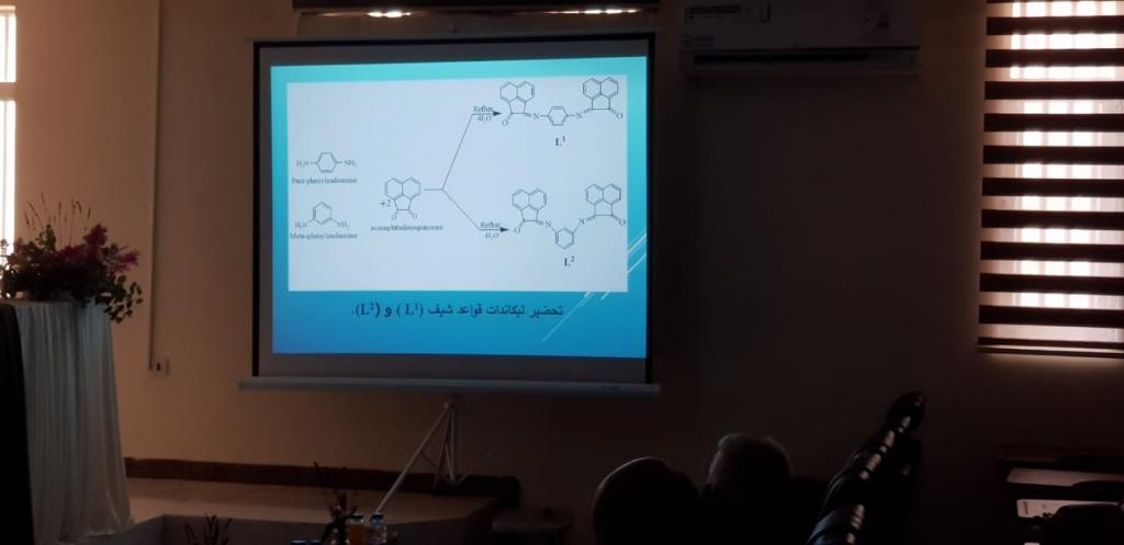 رسالة ماجستير تناقش   تحضير وتشخيص معقدات Cu(II), Ni(II), Co(II) مع قواعد شيف رباعية السن