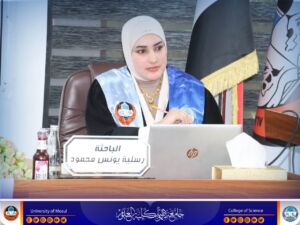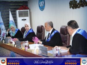 ترأّس لجنة المناقشة الأستاذ الدكتور محمود زكي سليمان سلطان، وعضوية كل من الأستاذ المساعد الدكتور شاكر غازي جرجيس حسين والدكتورة ساهرة إدريس حميد أحمد، تحت إشراف وعضوية الأستاذ المساعد الدكتورة غادة عبد الرزاق محمد إبراهيم.