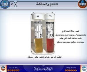 - تحديد تحت النوع لسلالة pneumoniae الأكثر سيادة عبر اختباري Voges-Proskauer وفحص استهلاك المالونيت.